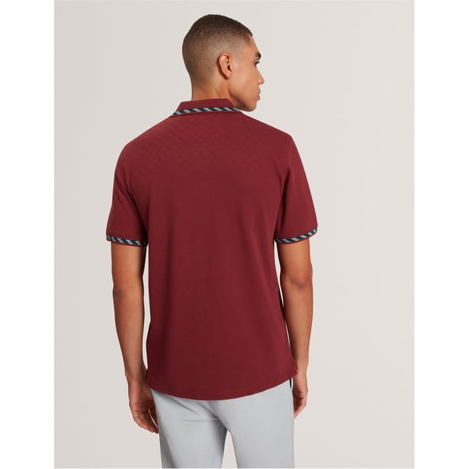 Ted Baker's Jacquard Short-Sleeve Polo Shirt updates casual style with textured jacquard fabric and fine detailing for a designer summer essential.