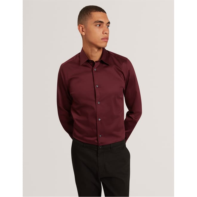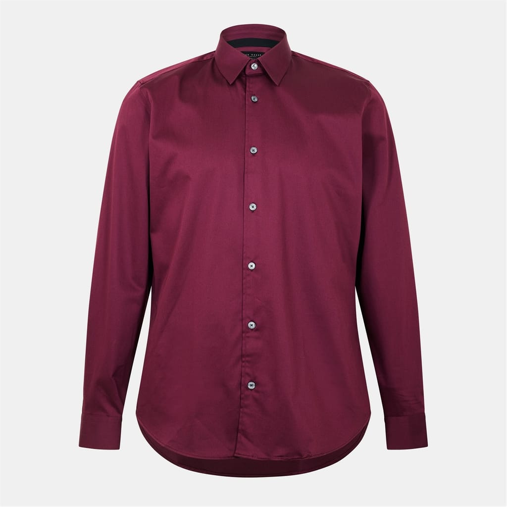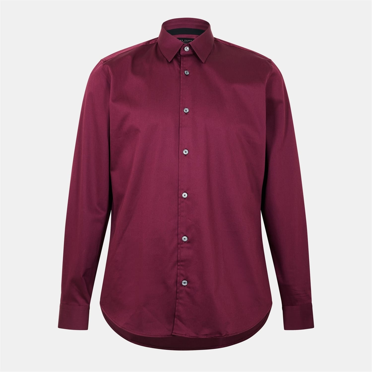 This Ted Baker top features a classic point collar and a solid pattern, offering a timeless look. Designed with long shirt sleeves and a regular fit, it ensures comfort and style. The front button closure and barrel cuffs add a touch of sophistication, making it a versatile addition to any wardrobe. -