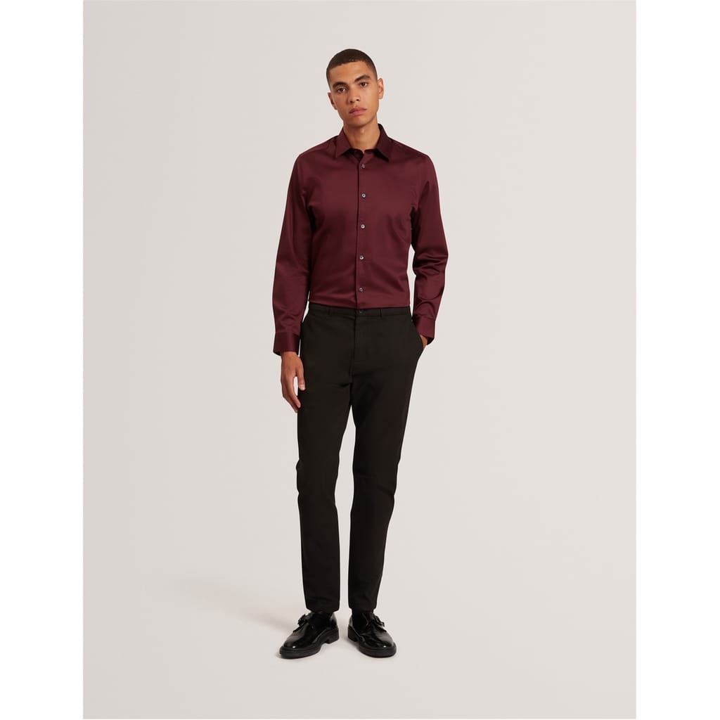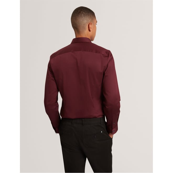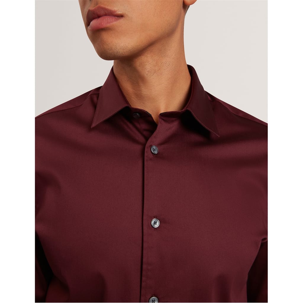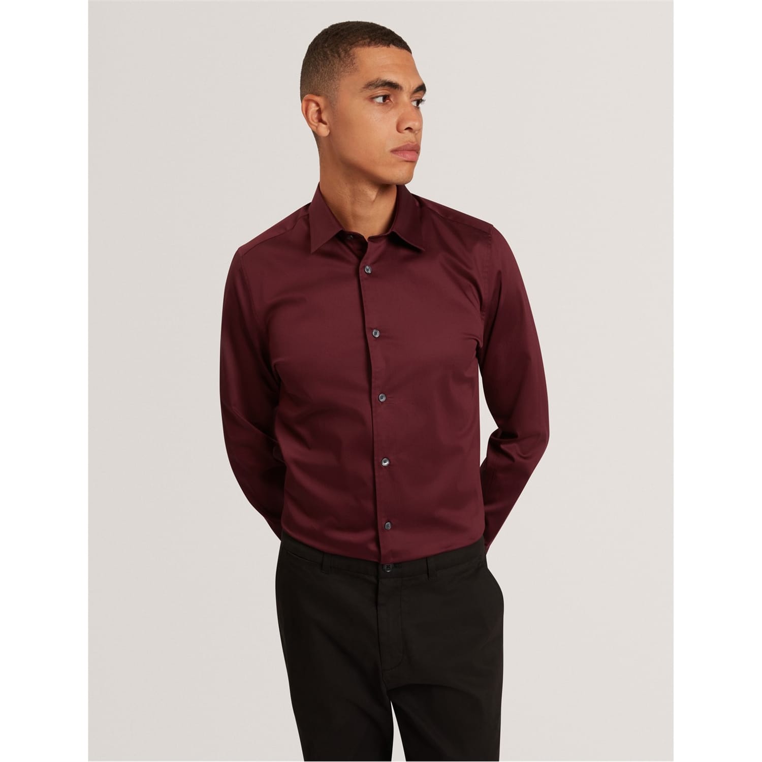 This Ted Baker top features a classic point collar and a solid pattern, offering a timeless look. Designed with long shirt sleeves and a regular fit, it ensures comfort and style. The front button closure and barrel cuffs add a touch of sophistication, making it a versatile addition to any wardrobe. -