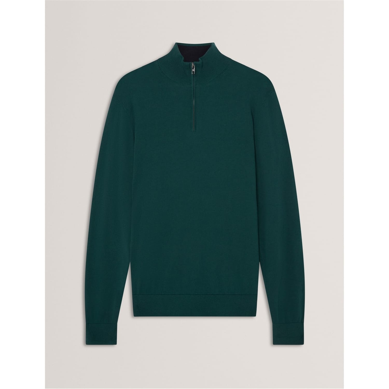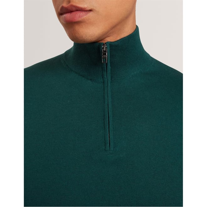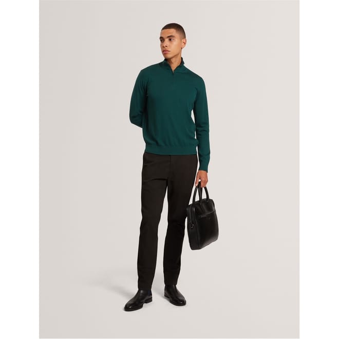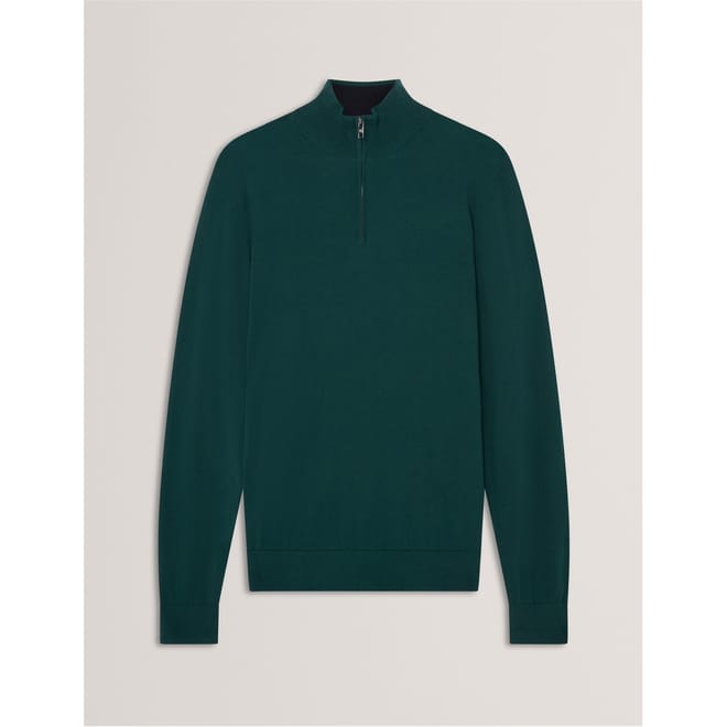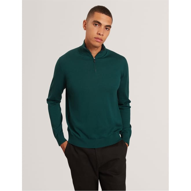 Discover the Ted Baker merino top, featuring a high collar and a zip neck for versatile styling. This solid long-sleeve piece is designed with a regular fit and raglan sleeves, offering comfort and ease of movement. The ribbed cuff and hem add a touch of detail, while the half zipper closure ensures practicality. Perfect for a refined yet casual look. -