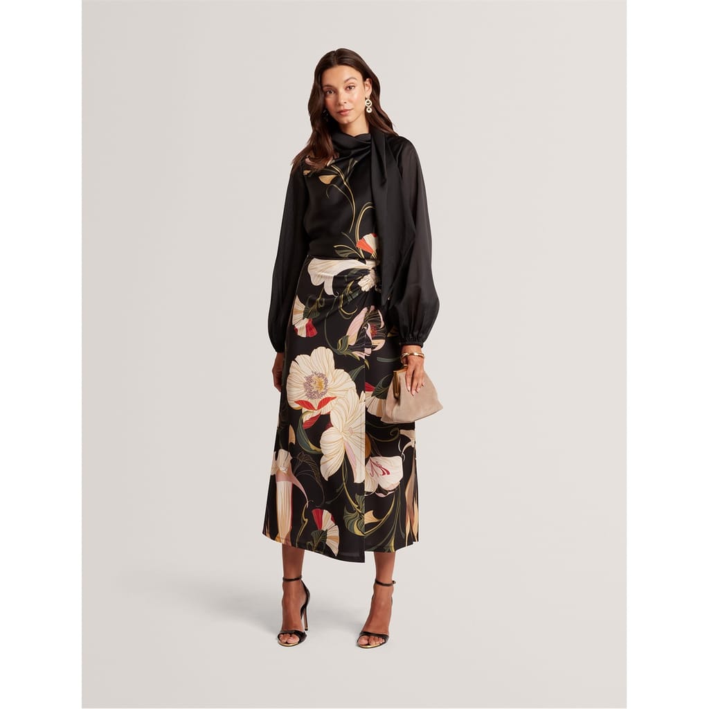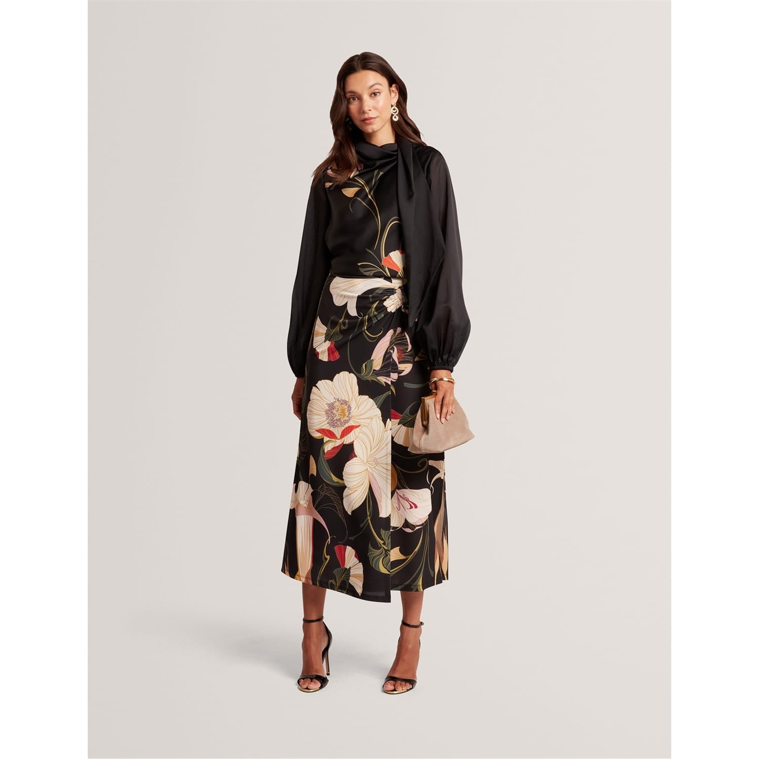 Ted Baker's Women's Tie Neck Long-Sleeve Blouse features a shape with a neck tie and tailored long sleeves. The design showcases Ted Baker's quality.
