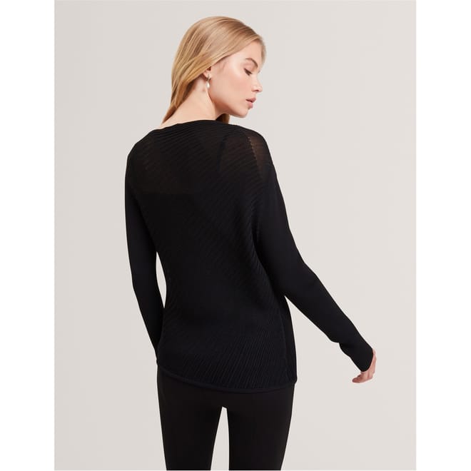 Ted Baker's Long Sleeve Sheer Knitted Top balances delicate transparency with structure. The lightweight design offers many styling options while maintaining the brand's fashion aesthetic.