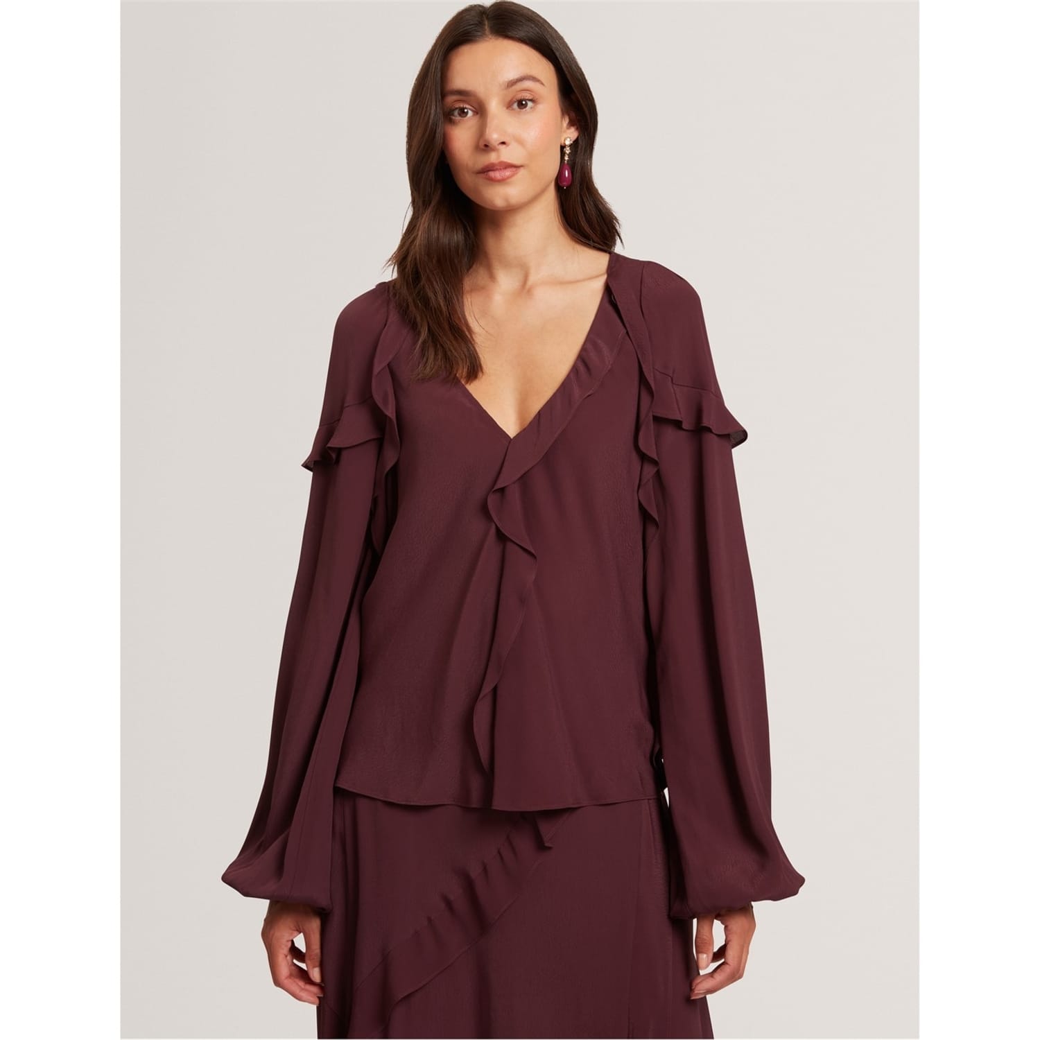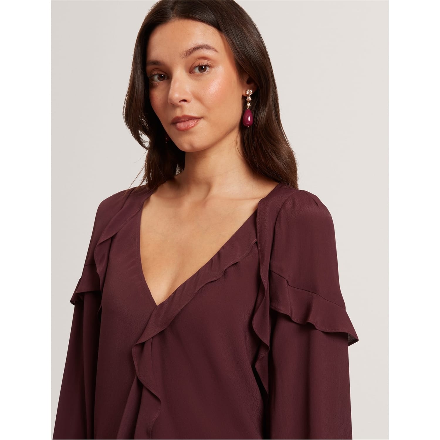 Beautiful detailing meets a classic shape in Ted Baker's Long-Sleeve Blouse. Thoughtfully designed elements add movement and dimension to this piece, ideal for both office and evening wear.
