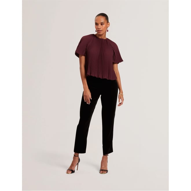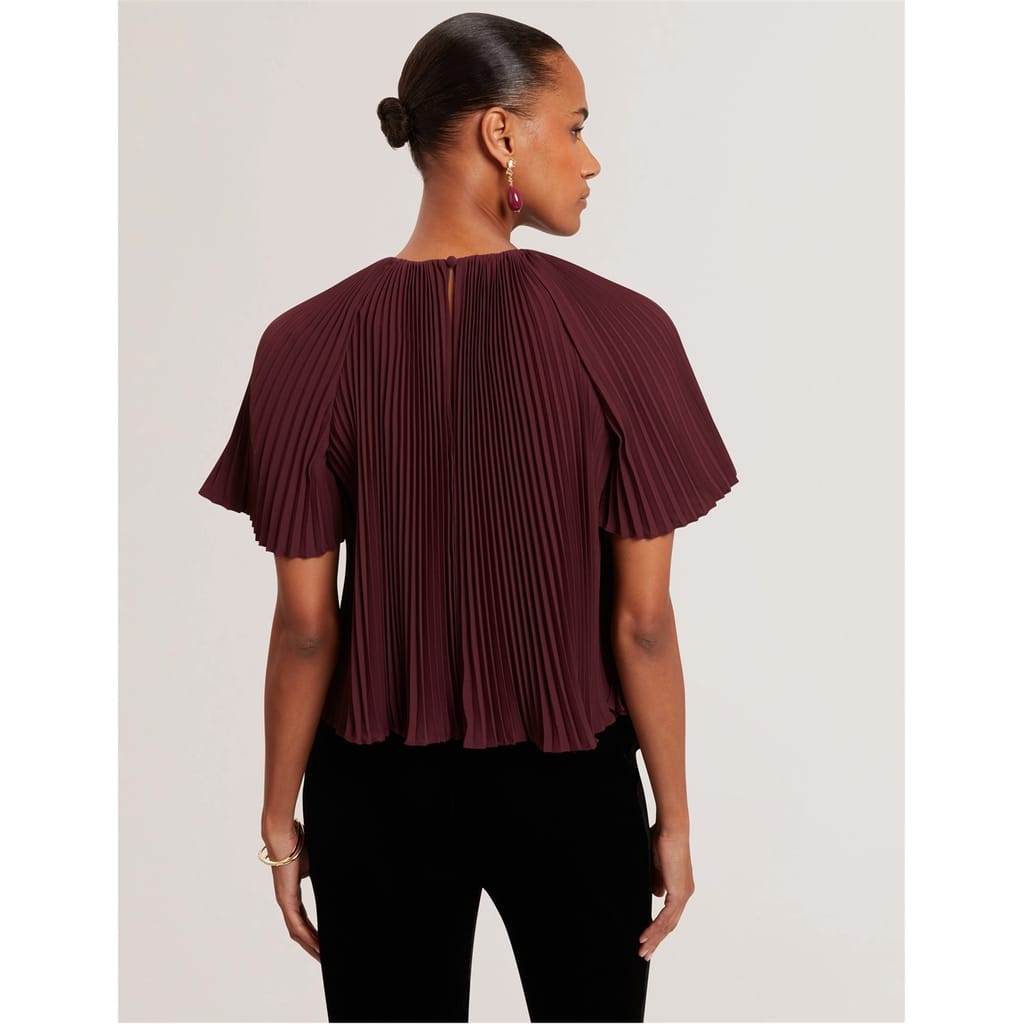 Discover the Ted Baker top, featuring a relaxed fit and short sleeves with an angled style. This solid, ribbed design is enhanced with pleat embellishments, offering a unique texture. The crew neck adds a classic touch, while the zipper closure provides practicality. Perfect for those seeking a blend of style and comfort. -