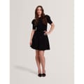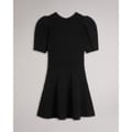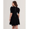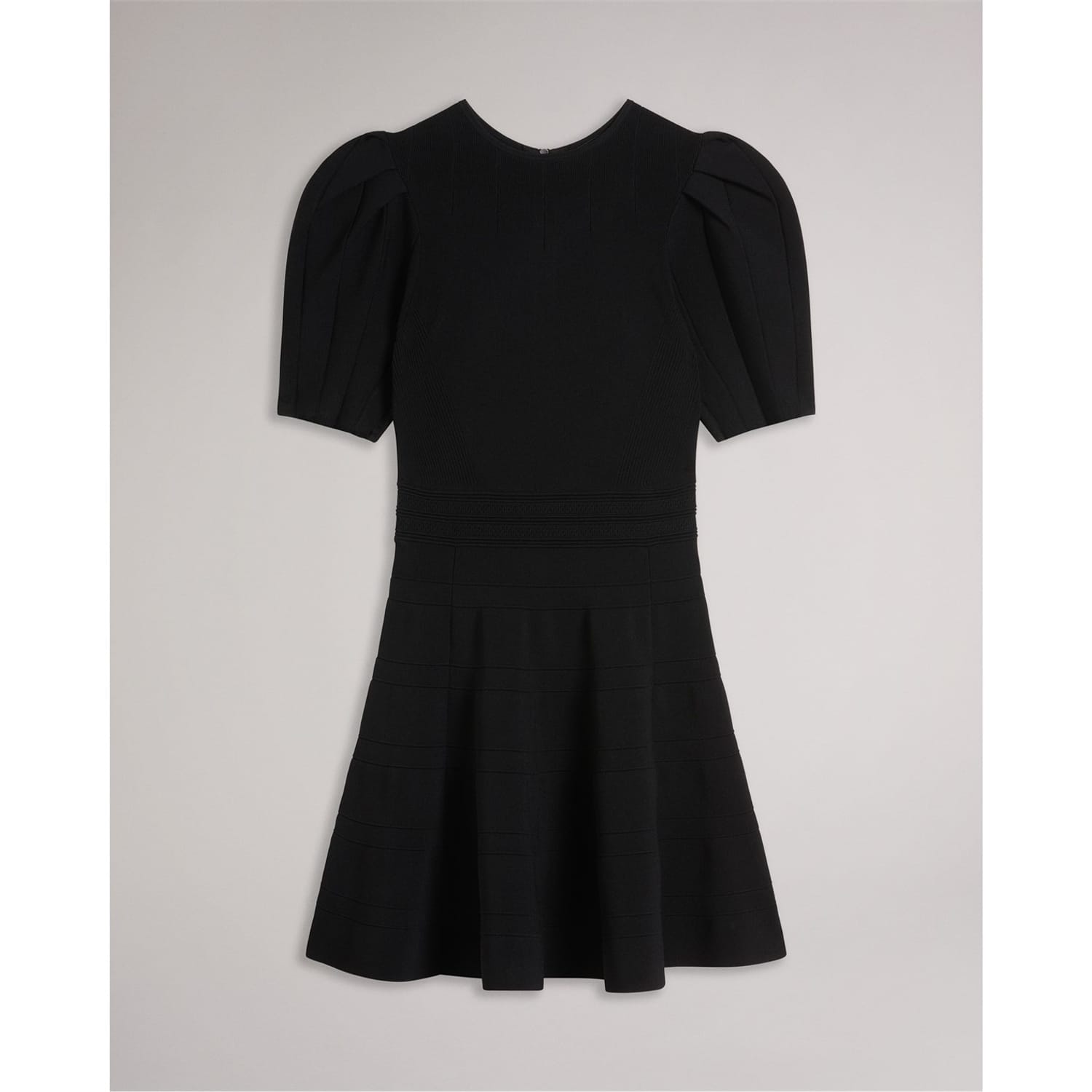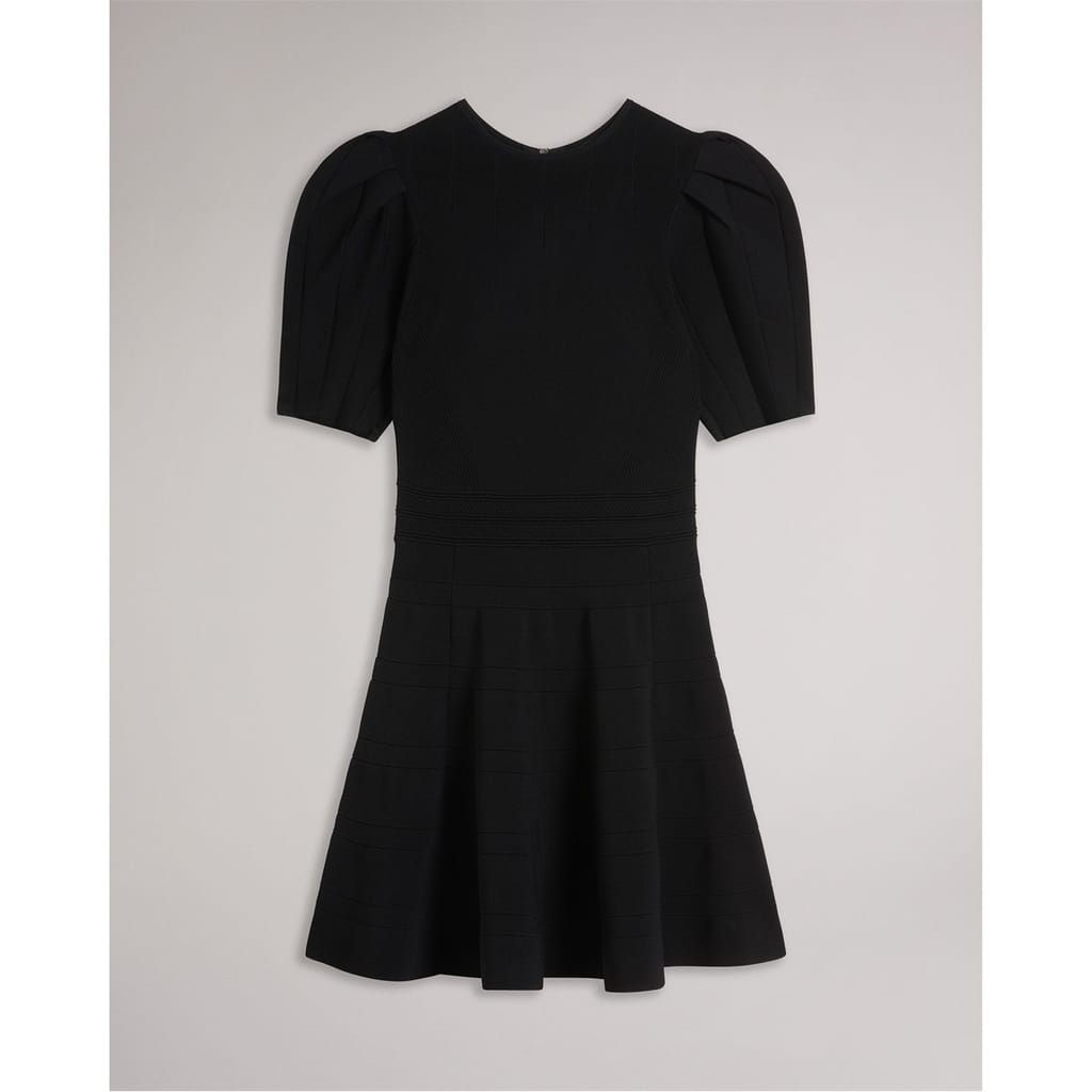 This Ted Baker skater dress is a stylish addition to your wardrobe. Crafted from knit material, it features a solid pattern and a flattering knee length. The dress is designed with a crew neck and short puff sleeves, adding a touch of elegance. A straight hem and zipper closure complete the look, making it a versatile choice for various occasions. -