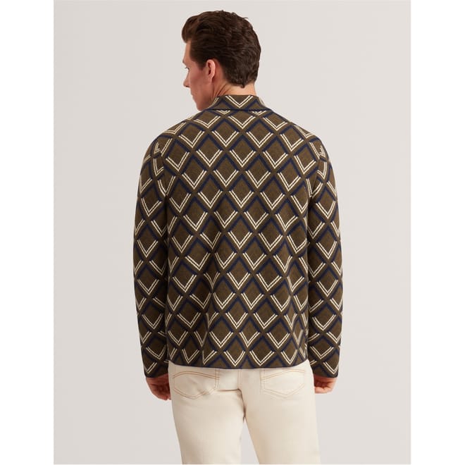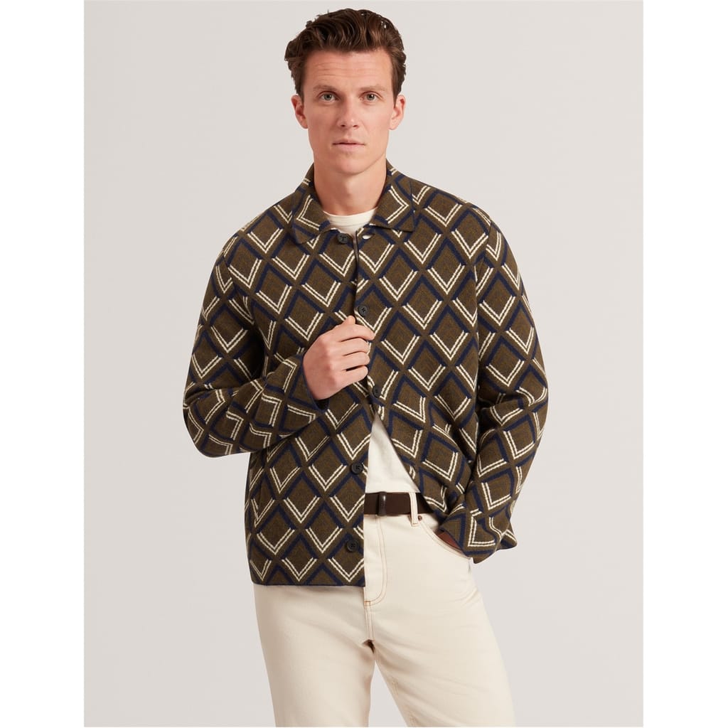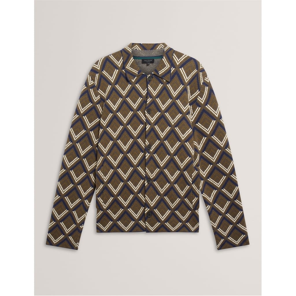 Ted Baker's Jacquard Hybrid Jacket for men pairs a structured cut with relaxed wearability, featuring textured jacquard fabric that adds visual interest to this piece.