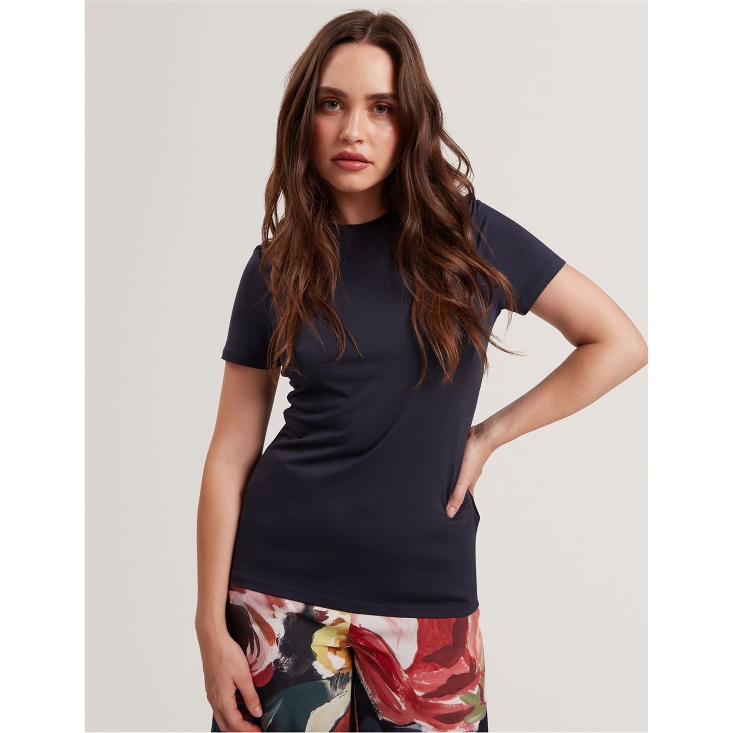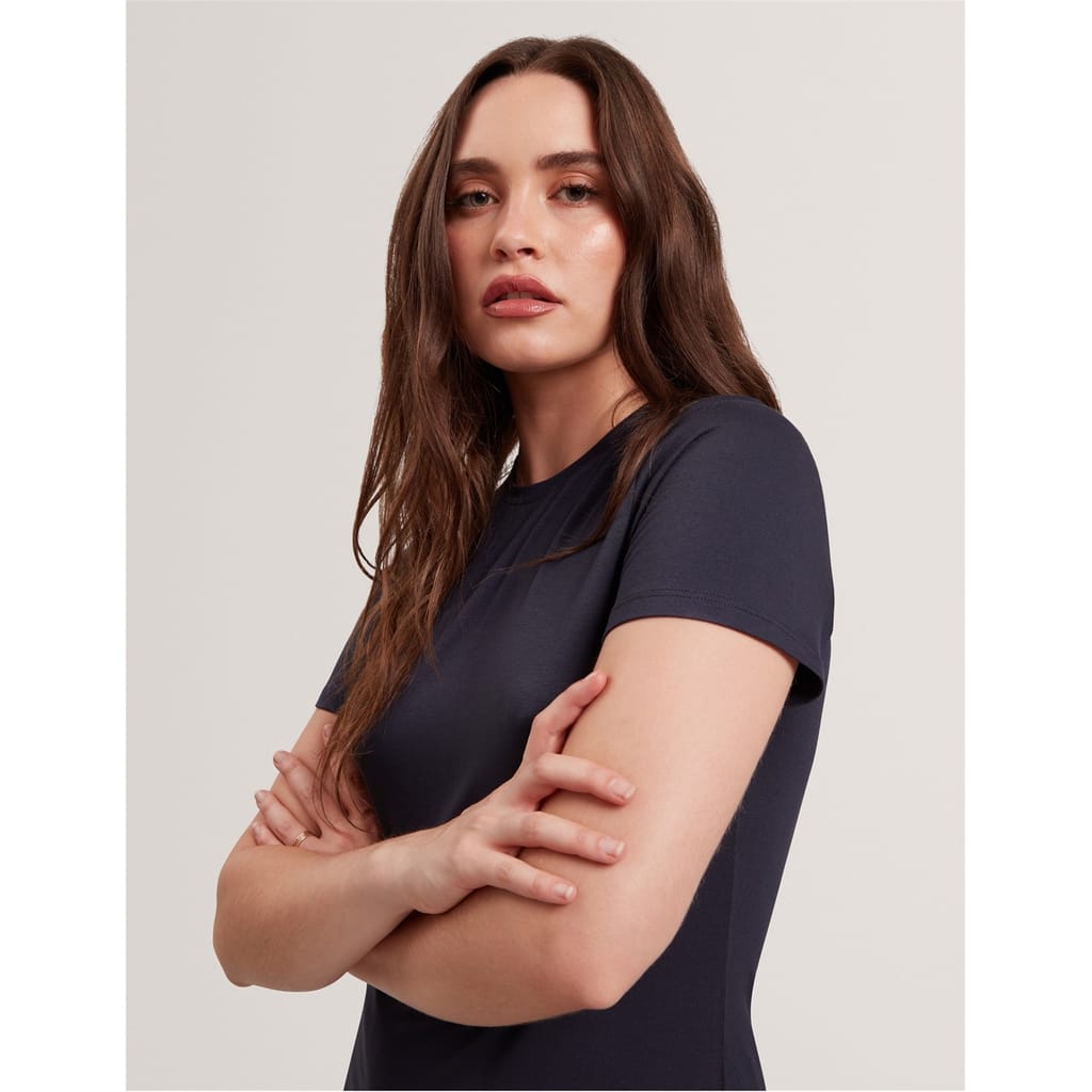 Discover the Ted Baker top, featuring a solid pattern and a slim fit. This short-sleeve design is perfect for a sleek and modern look. The crew neck adds a classic touch, making it a versatile addition to your wardrobe. -