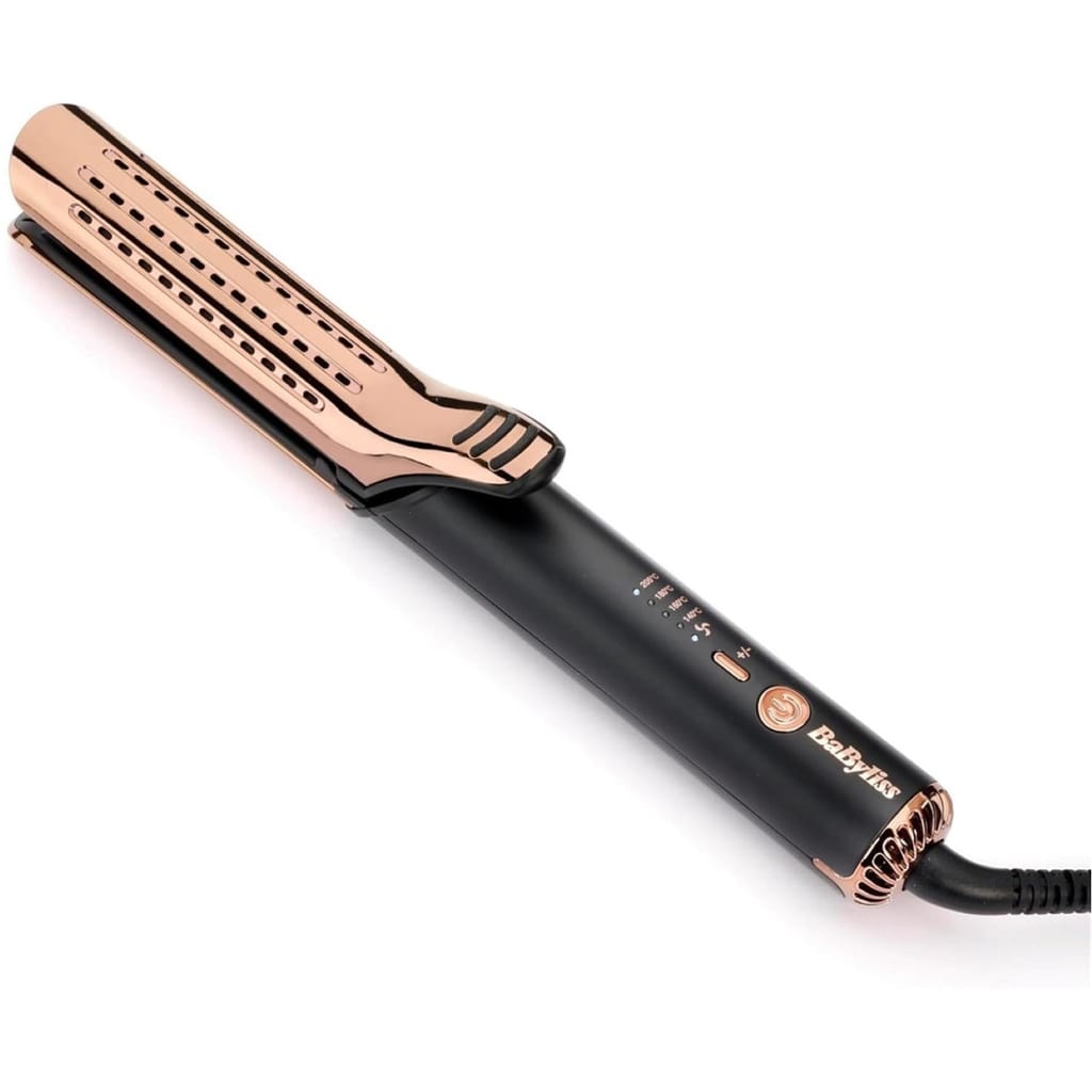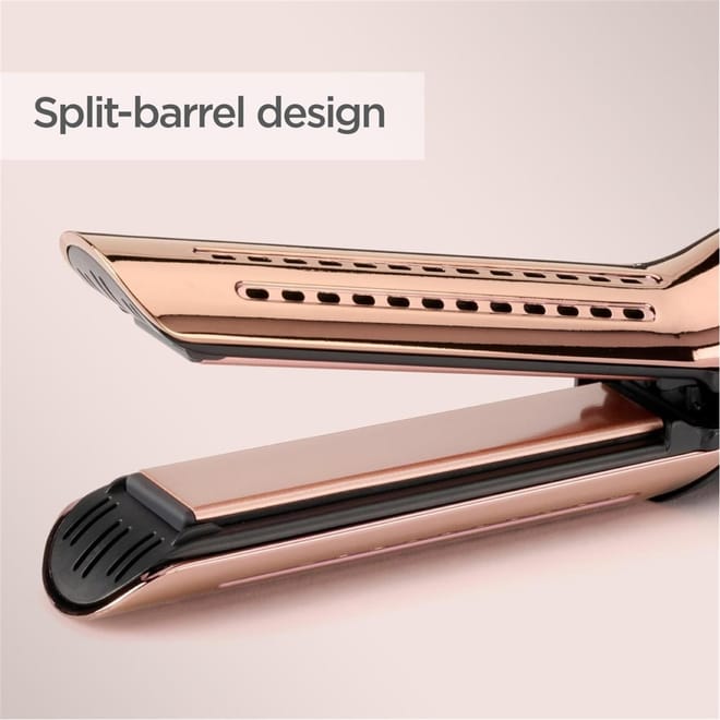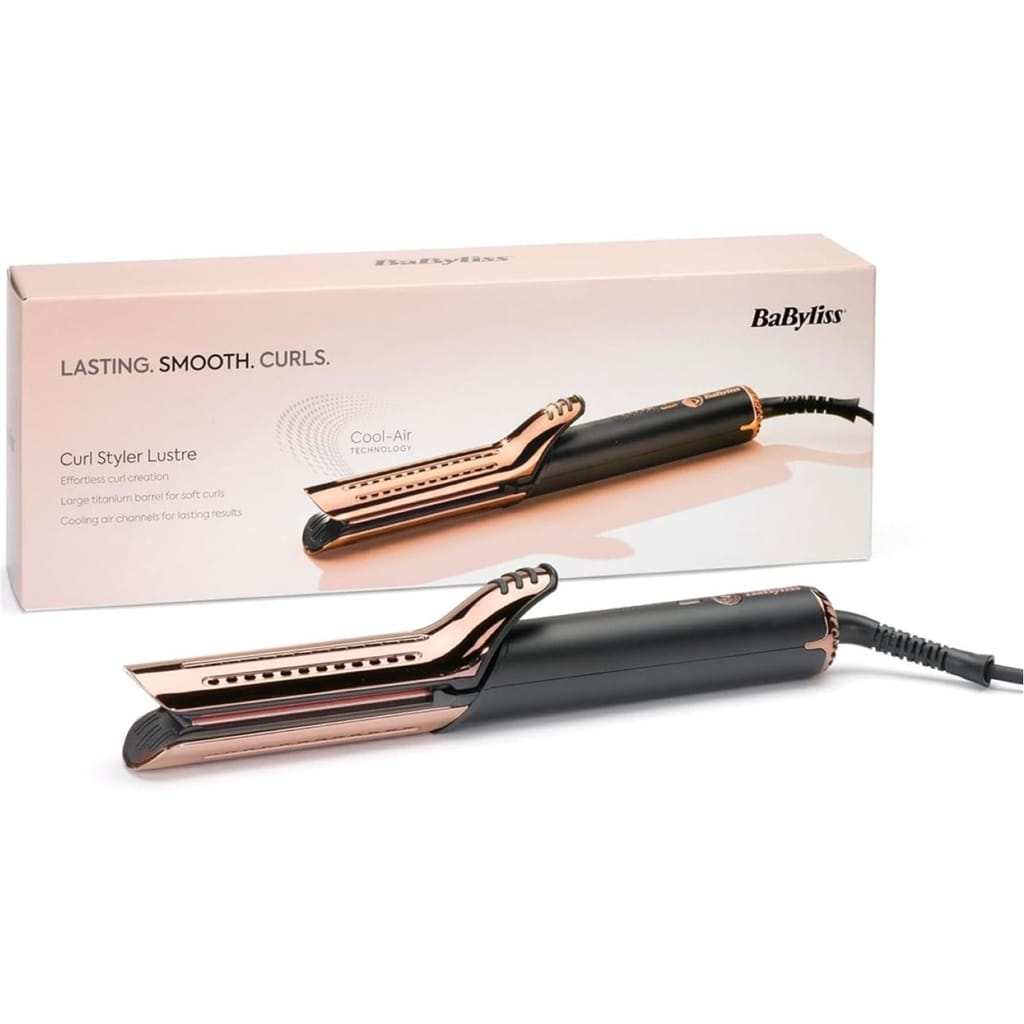 The BaByliss 38mm Curl Styler Lustre Hair Curler uses innovative heat and cool-air technology to effortlessly create soft, lasting curls. Its unique true-titanium split-barrel design pre-heats hair while cool-air channels lock in style. With auto shut-off for safety and a heat mat included, it's perfect for polished looks—ideal for weddings, parties, or a glamorous night out.