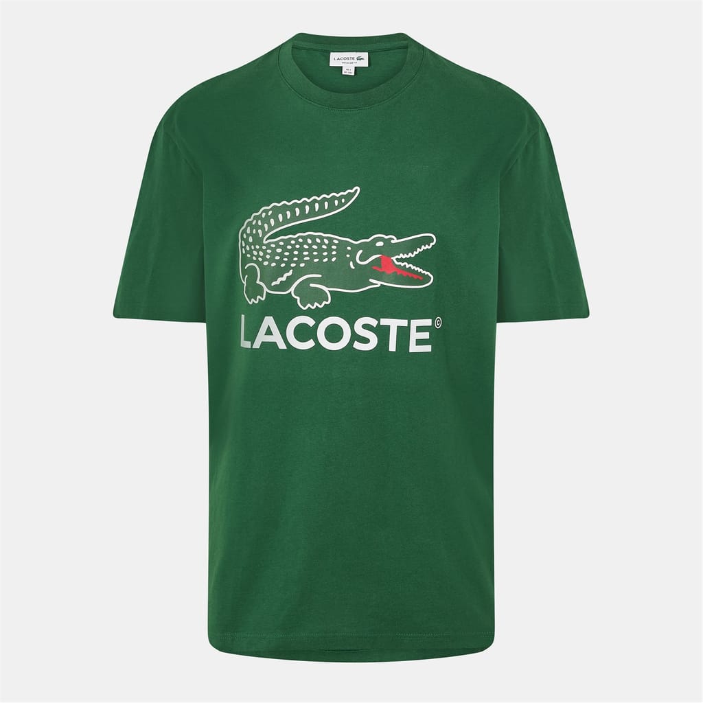 This Lacoste top is a casual staple featuring a regular fit and short sleeves. The crew neck design is complemented by a distinctive crocodile print, adding a touch of character. The top is adorned with the iconic Lacoste logo, making it a stylish choice for everyday wear. -
