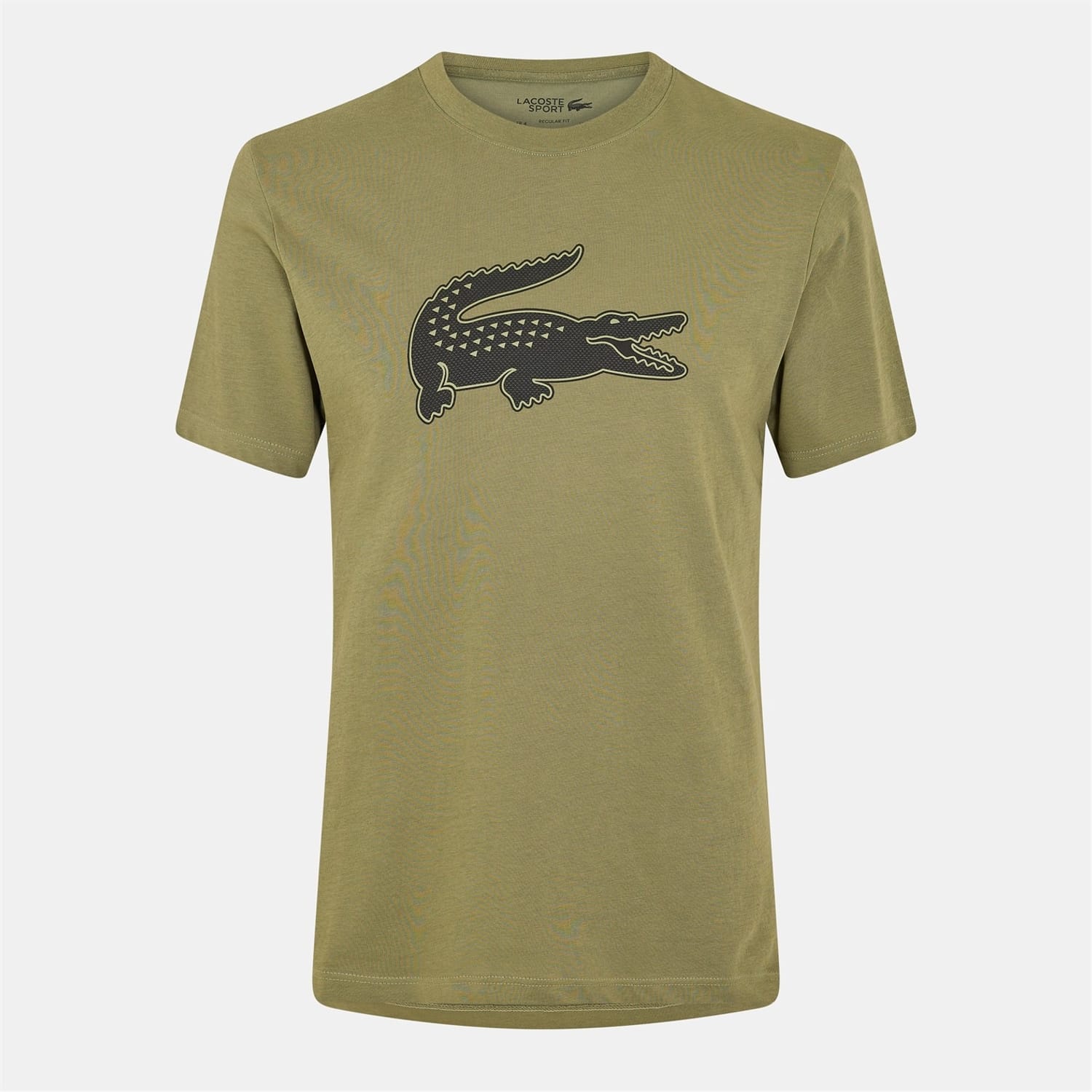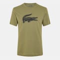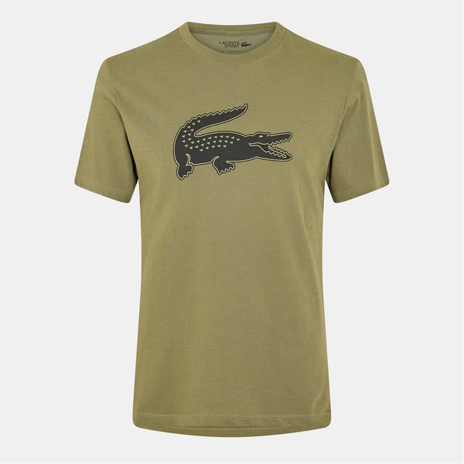 This Lacoste top features a regular fit with a crew neck and short sleeves. It showcases a striking 3D logo embellishment and a distinctive crocodile graphic print, making it a standout piece for sporting activities. -