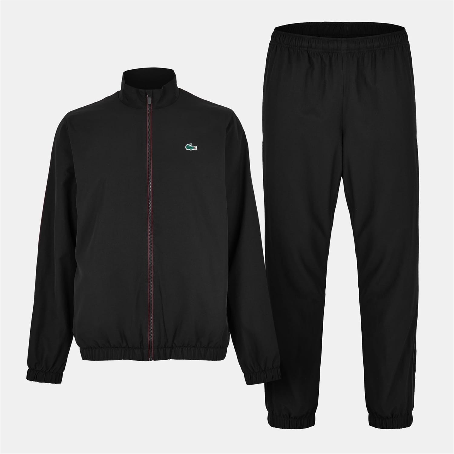 Elevate your activewear collection with this Lacoste full track suit. Featuring a zip neck and long sleeves, the plain sleeve design ensures a sleek look. The set includes athletic track pants, adorned with the iconic crocodile print logo, perfect for a stylish yet functional ensemble. Ideal for those who appreciate quality and comfort in their athletic wear. -