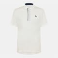 This Lacoste top is a semi-formal piece featuring a polo collar and short sleeves. It has a button closure and a regular fit, making it a versatile addition to your wardrobe. The solid pattern is complemented by the iconic crocodile logo, adding a touch of brand identity. -