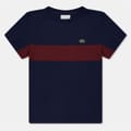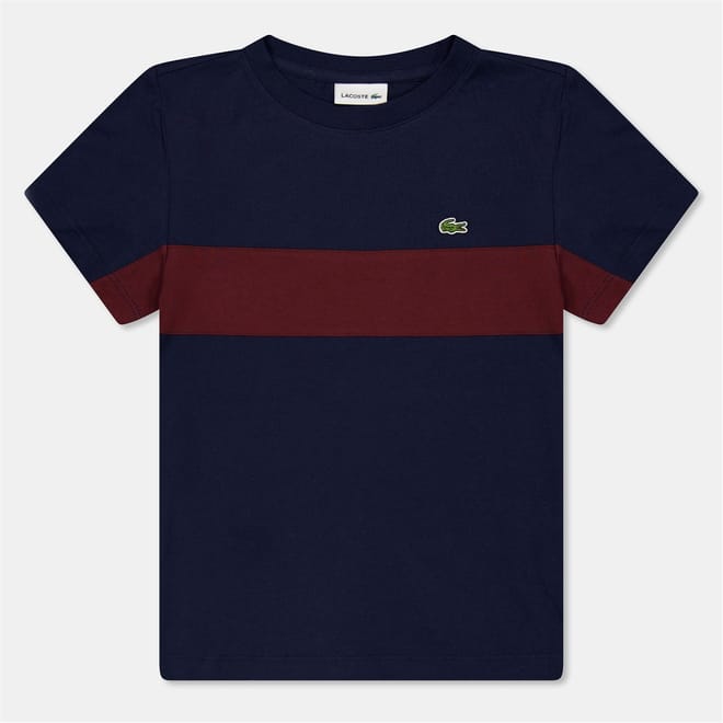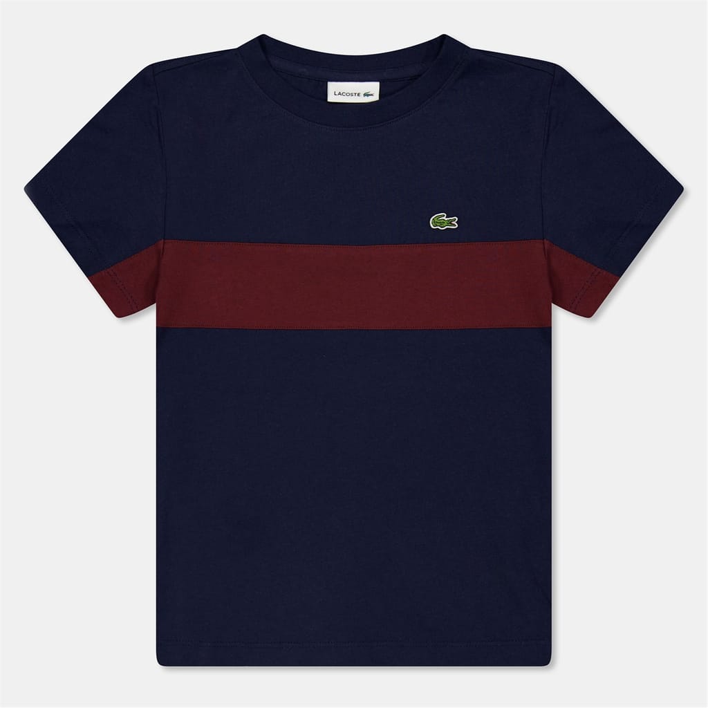 This Lacoste top is a staple for casual and basic collections. Featuring a regular fit and short sleeves, it offers a comfortable wear. The crew neck design is complemented by a stylish color block pattern. A subtle logo embellishment adds a touch of brand identity, making it a versatile addition to your wardrobe. -