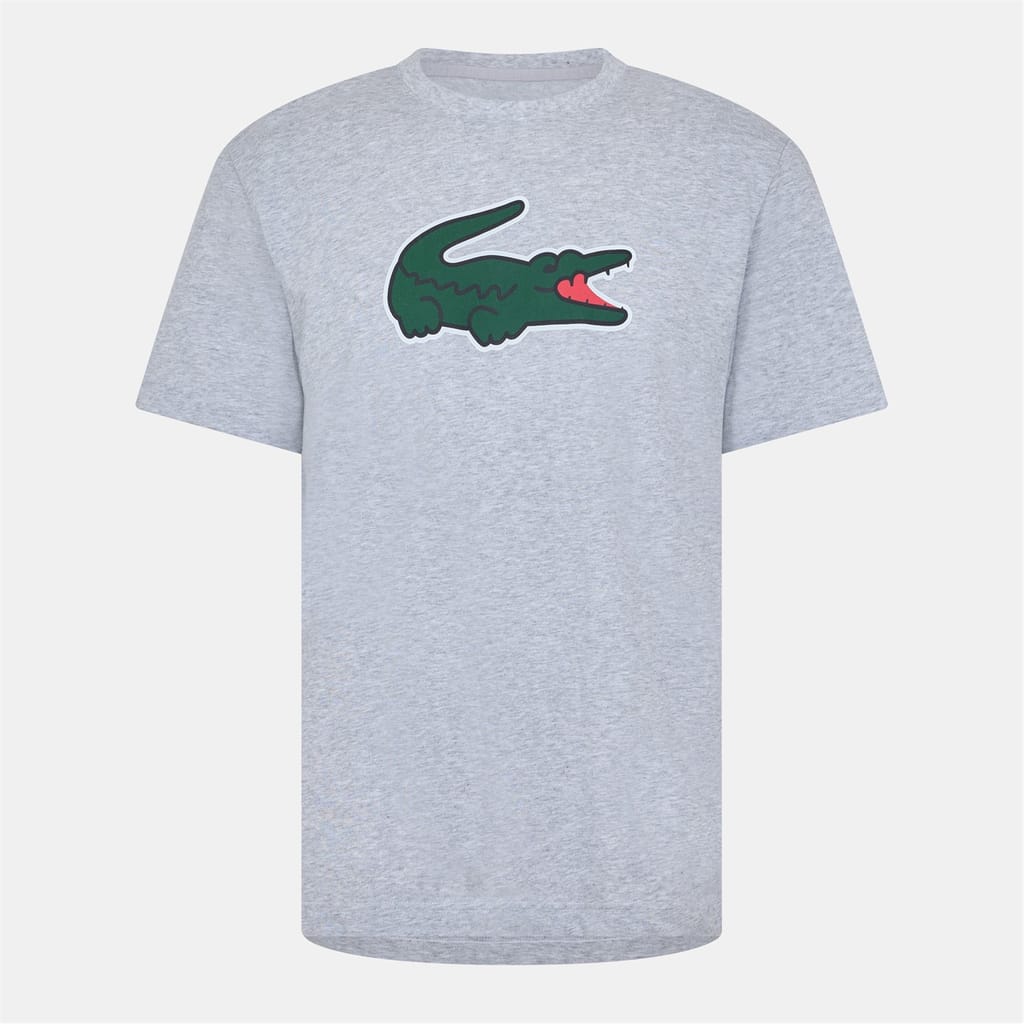 This Lacoste top from the casual collection features a regular fit and short sleeves. It showcases a crew neck and a distinctive graphic print, highlighted by the iconic crocodile logo. -