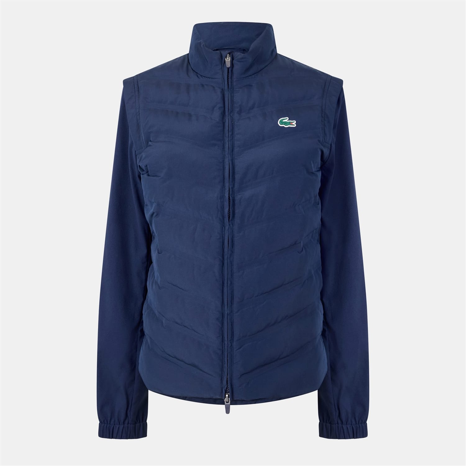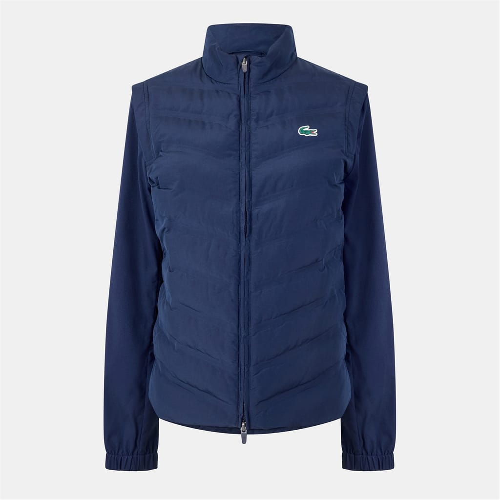 This Lacoste performance jacket features a high collar and a regular fit, offering both style and functionality. The jacket is designed with a straight hem and a zipper closure for easy wear. It includes an elasticated cuff for added comfort. The solid pattern is complemented by the iconic crocodile print logo, making it a distinctive choice for those who appreciate subtle branding. -