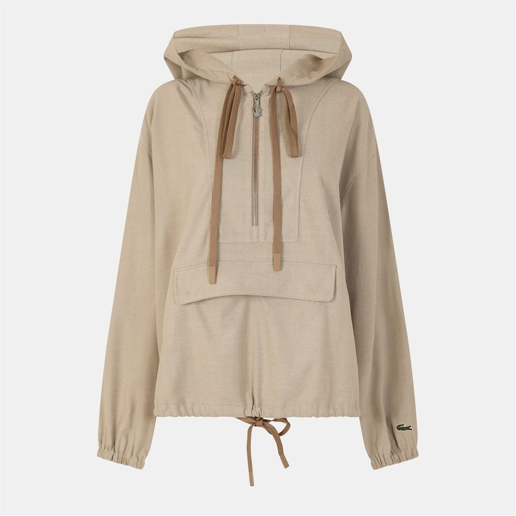 This Lacoste cropped top features a hooded design with a drawstring and zipper closure. The long sleeves and relaxed fit ensure comfort, while the solid pattern adds a classic touch. Embellished with a logo and pocket, this top combines style and functionality effortlessly. -