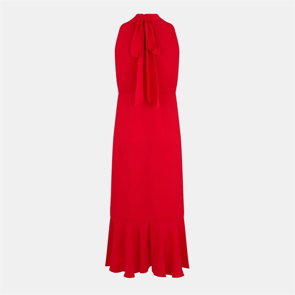 This Ted Baker midi dress is a sophisticated choice for any occasion. Featuring a halter neck and a flattering A-line silhouette, it is crafted from woven fabric for a refined look. The solid pattern adds a timeless appeal, while the ruffle hem provides a touch of elegance. Perfect for those seeking a stylish yet understated ensemble. -