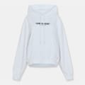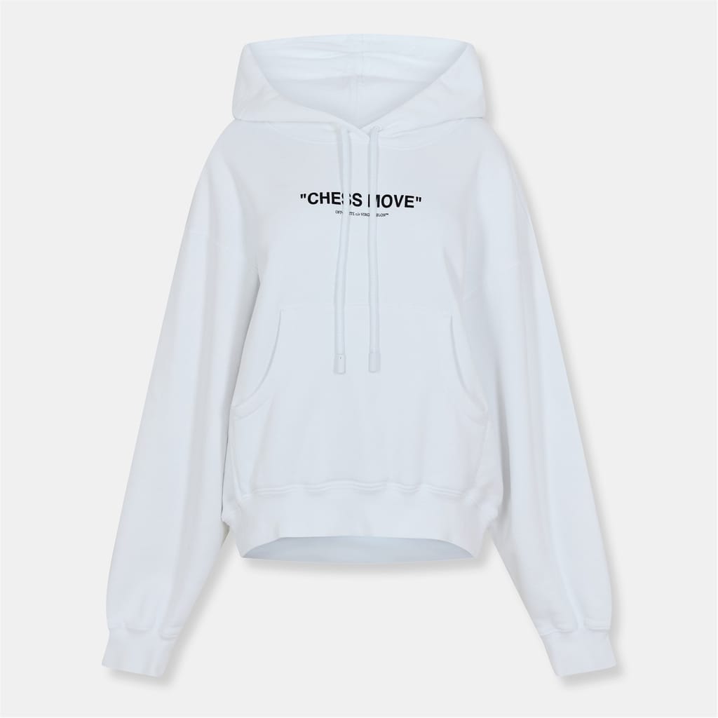 This Off White top features a hooded neck and long sleeves with a drop shoulder design. Crafted with a knit texture, it offers a relaxed fit and ribbed cuffs for added comfort. The solid pattern is complemented by logo lettering, making it a standout piece in any casual collection. -