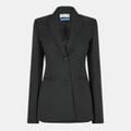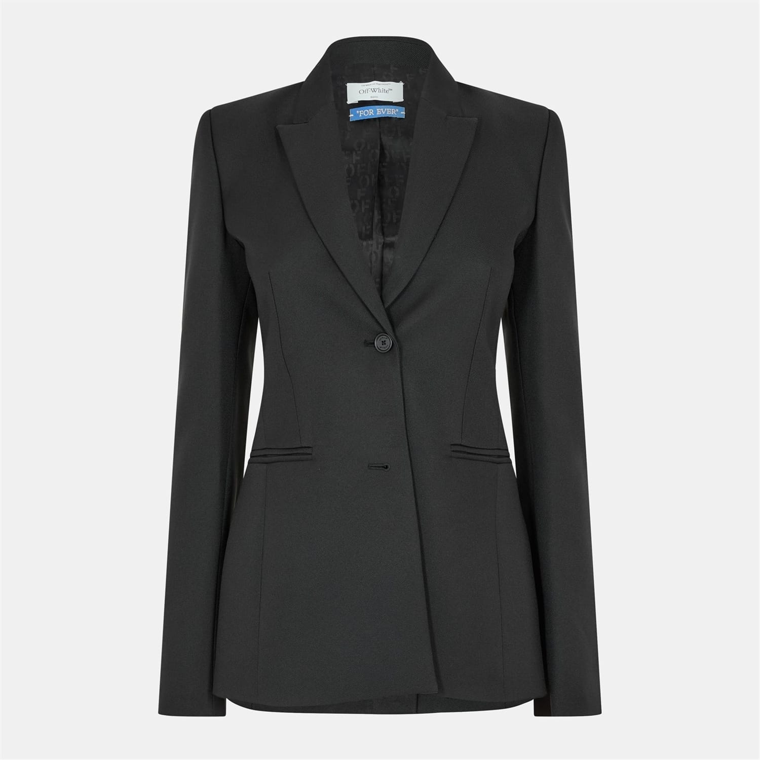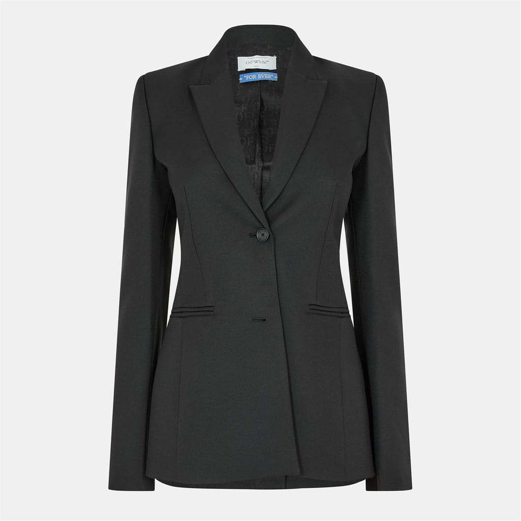 This Off-White tech jacket features a lapel collar and a straight hem, offering a regular fit. The solid pattern is complemented by a button closure, while the logo embellishment adds a distinctive touch. -