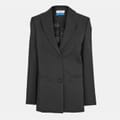 This Off-White suit jacket features a lapel collar and a straight hem, offering a regular fit. The solid pattern adds a classic touch, while the button closure ensures a secure fit. Embellished with pockets, this jacket combines style and functionality. -