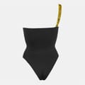 Discover Off White's one-piece swimwear, perfect for beach collections. This swimwear features a distinctive logo embellishment and bold lettering graphic, making it a standout choice for your next seaside adventure. -