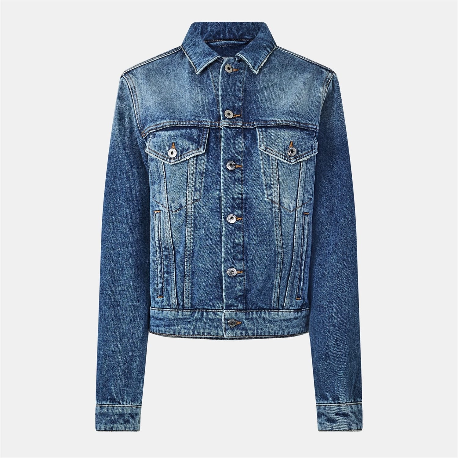 This Off-White denim jacket features a classic shirt collar and a button closure. Designed in a regular fit, it has a short length with a straight hem. The solid pattern is complemented by practical front pockets, making it a versatile addition to your wardrobe. -