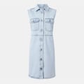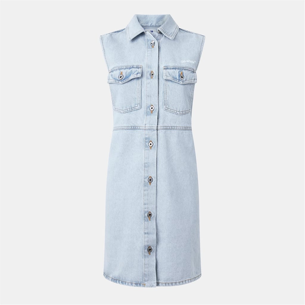 This Off White midi shirtdress is crafted from knit material, featuring a solid pattern and a regular fit. It boasts a shirt collar with a collared neck and a button closure. The dress is designed with a straight hem and includes practical embellishments like a chest pocket. -