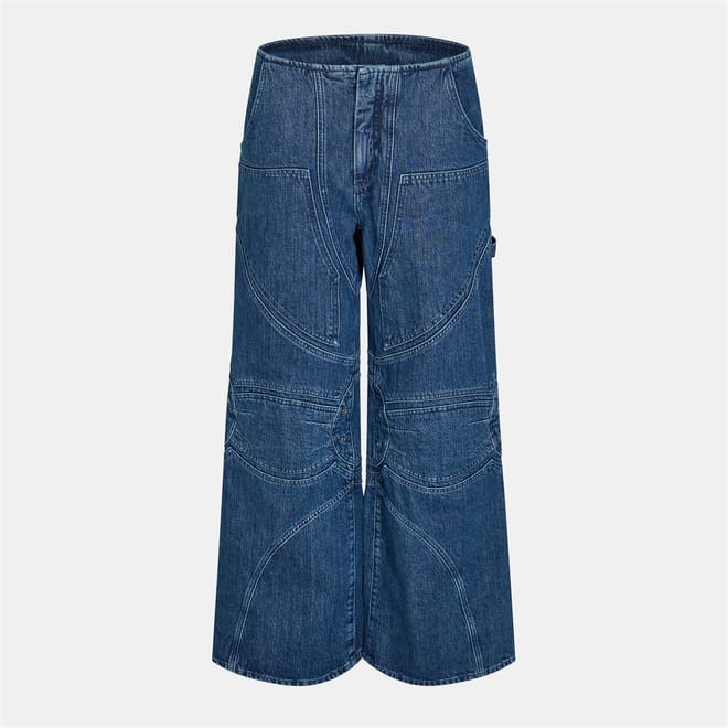 Discover the relaxed fit wide-leg jeans from Off White, featuring a zip fly and button closure. These jeans are designed with a wide leg cut and practical pockets, offering both style and functionality. Perfect for those who appreciate a blend of comfort and contemporary fashion. -