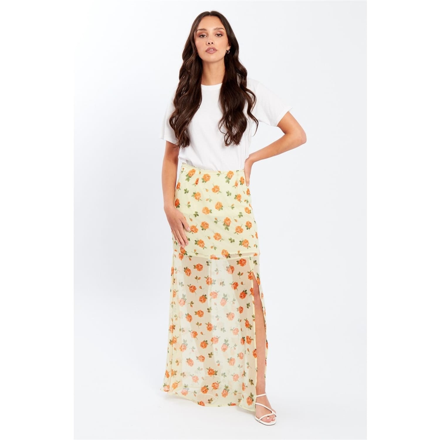 Influence presents a maxi floral skirt, perfect for casual collections. This A-line design offers a graceful silhouette, making it an ideal choice for those seeking a blend of style and comfort. -
