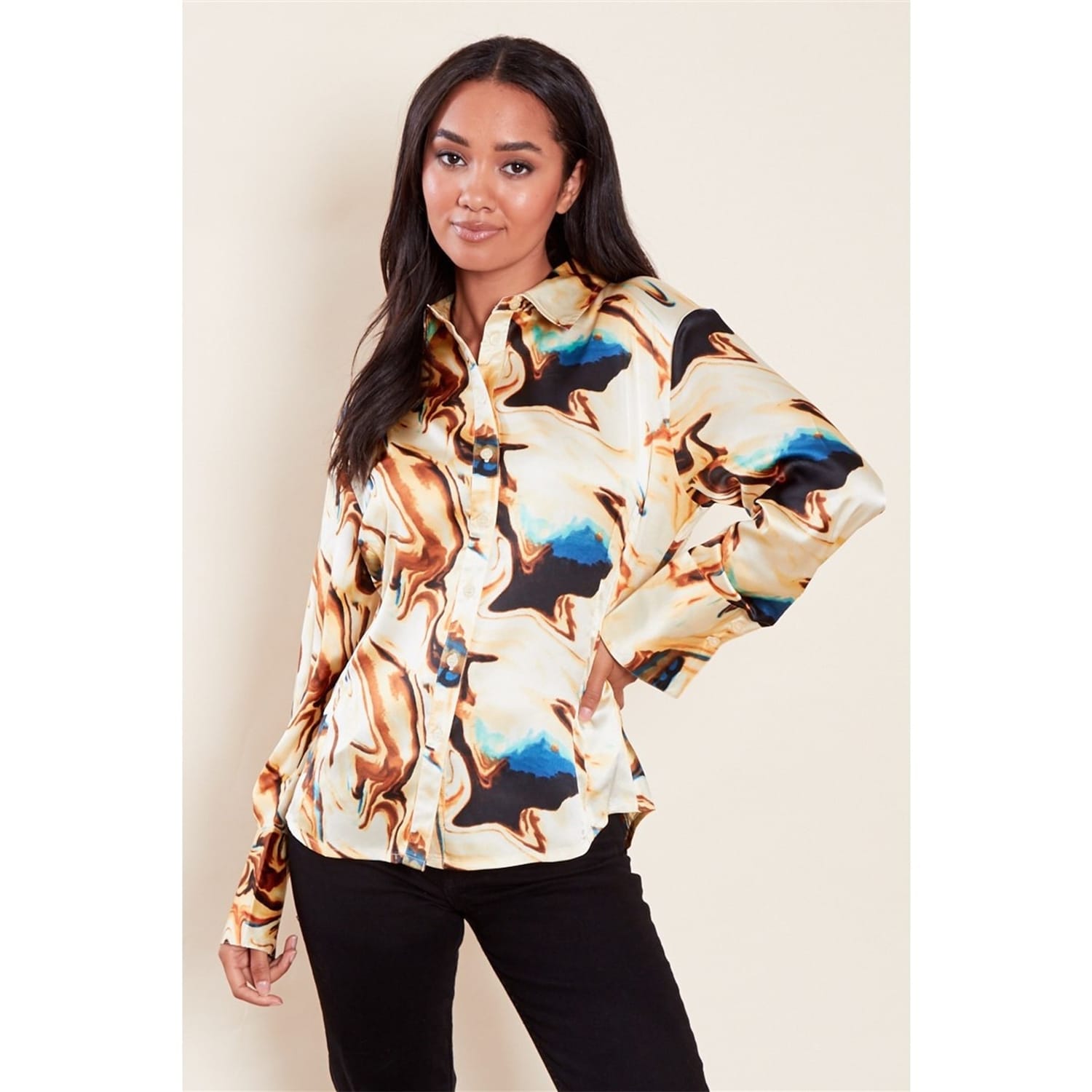 Discover the Influence top, featuring a marble pattern and a regular fit. This long sleeve design includes a shirt collar and button closure, complemented by a practical pocket embellishment. Perfect for adding a touch of style to your wardrobe. -
