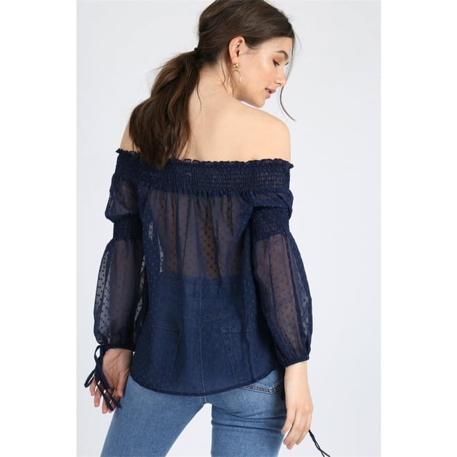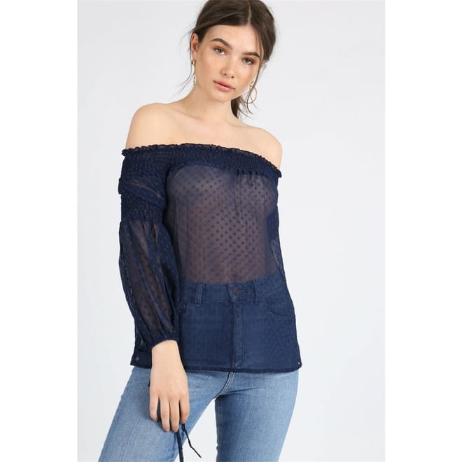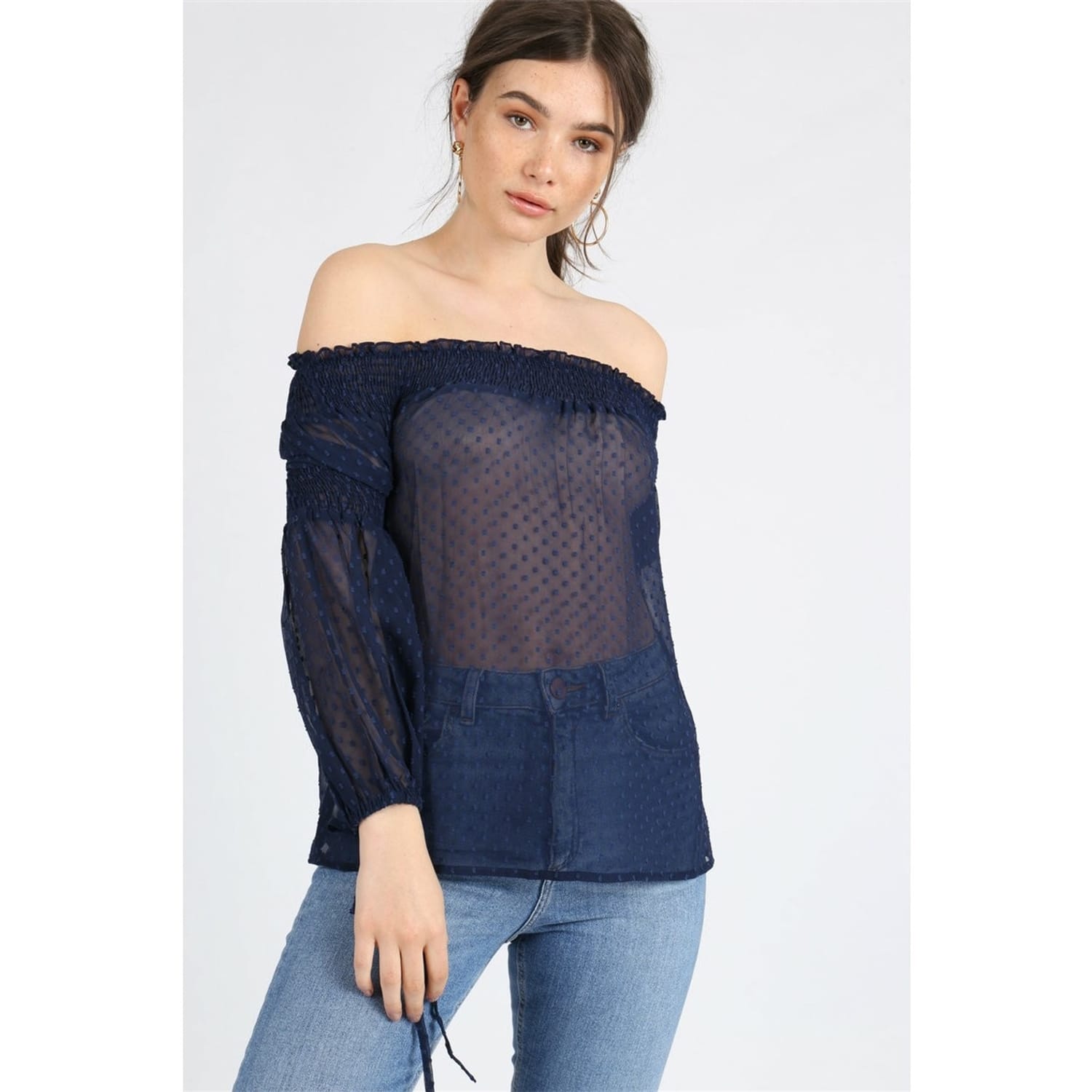Influence's Shirred Bardot Off Shoulder Top features a shirred texture. The off-shoulder design creates a shape that adapts to your personal style.