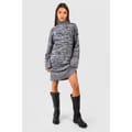 Violet Romance presents a marled mini sweater dress, featuring a turtleneck and long sleeves with a drop shoulder design. This knit dress offers a straight hem, perfect for a stylish and comfortable look. -