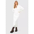 Violet Romance presents a maxi sweater dress with a collared neck and long sleeves. This solid knit piece features a drop shoulder design and a straight hem, offering a stylish and comfortable fit. -