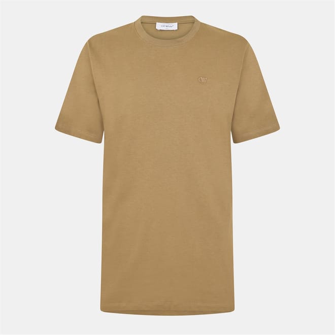 This Off White top is a casual essential, featuring a solid pattern and a crew neck. The short sleeves and slim fit offer a modern silhouette, while the logo embellishment adds a distinctive touch. -