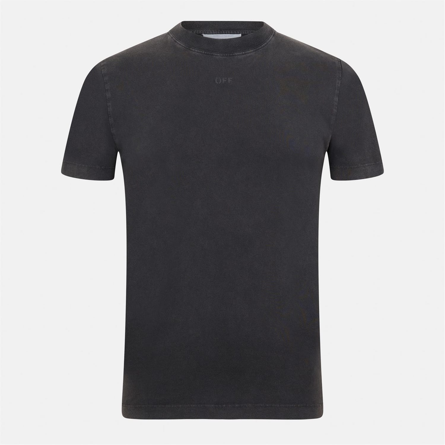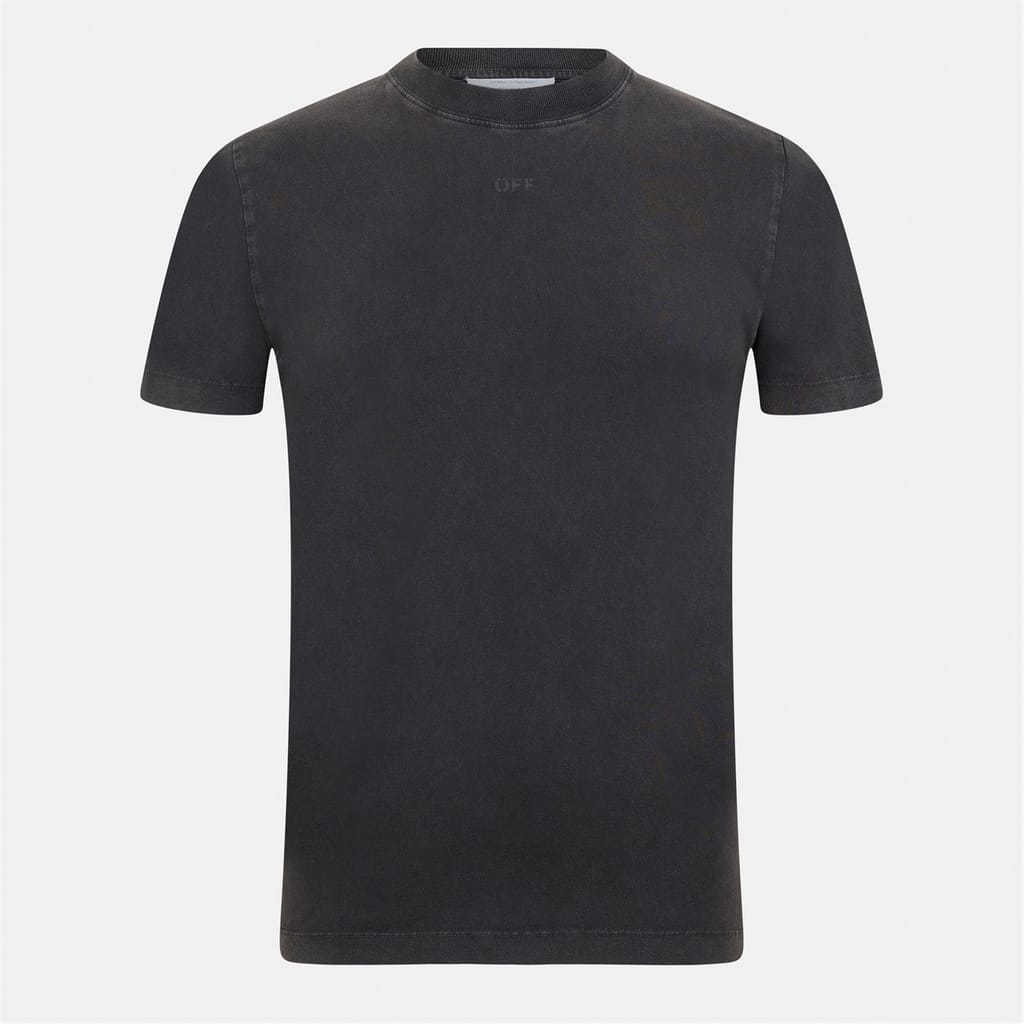 The Off White Moon top is a casual piece featuring a regular fit and a crew neck. This short-sleeve design is adorned with a solid pattern and distinctive logo lettering, making it a stylish addition to any wardrobe. -