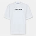 This Off White top features a regular fit with a crew neck and short sleeves. Adorned with a graphic print and lettering, it showcases the brand's logo, making it a standout piece in any casual collection. -