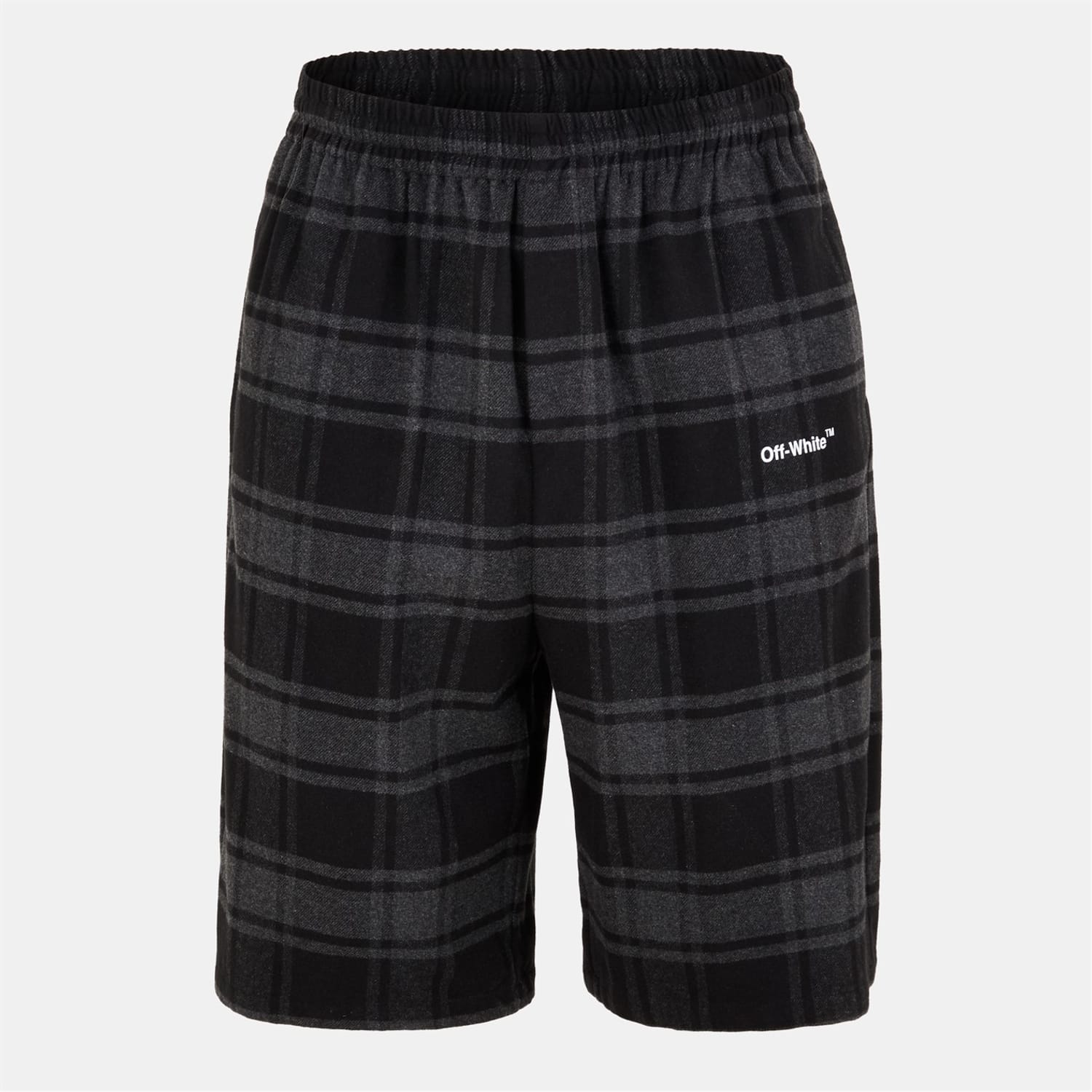 These Off-White plaid bermuda shorts are a stylish addition to your casual and loungewear collections. Featuring an elasticated waistband for comfort, they are adorned with a distinctive logo embellishment, adding a touch of brand identity to the design. -