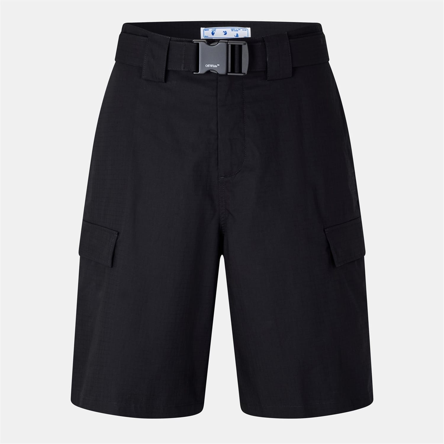 These Off-White cargo shorts are a versatile addition to your casual collection. Crafted with a solid pattern, they feature utility pockets and a logo embellishment for a distinctive touch. The shorts are designed with a zip fly and buckle closure, complemented by belt loops for added functionality. -