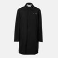 This Off-White puffer jacket features a solid pattern and a regular fit, offering both style and comfort. It is designed with a shirt collar and a straight hem, providing a classic silhouette. The jacket is embellished with a logo, adding a touch of brand identity. It includes a snap button closure for secure fastening. -