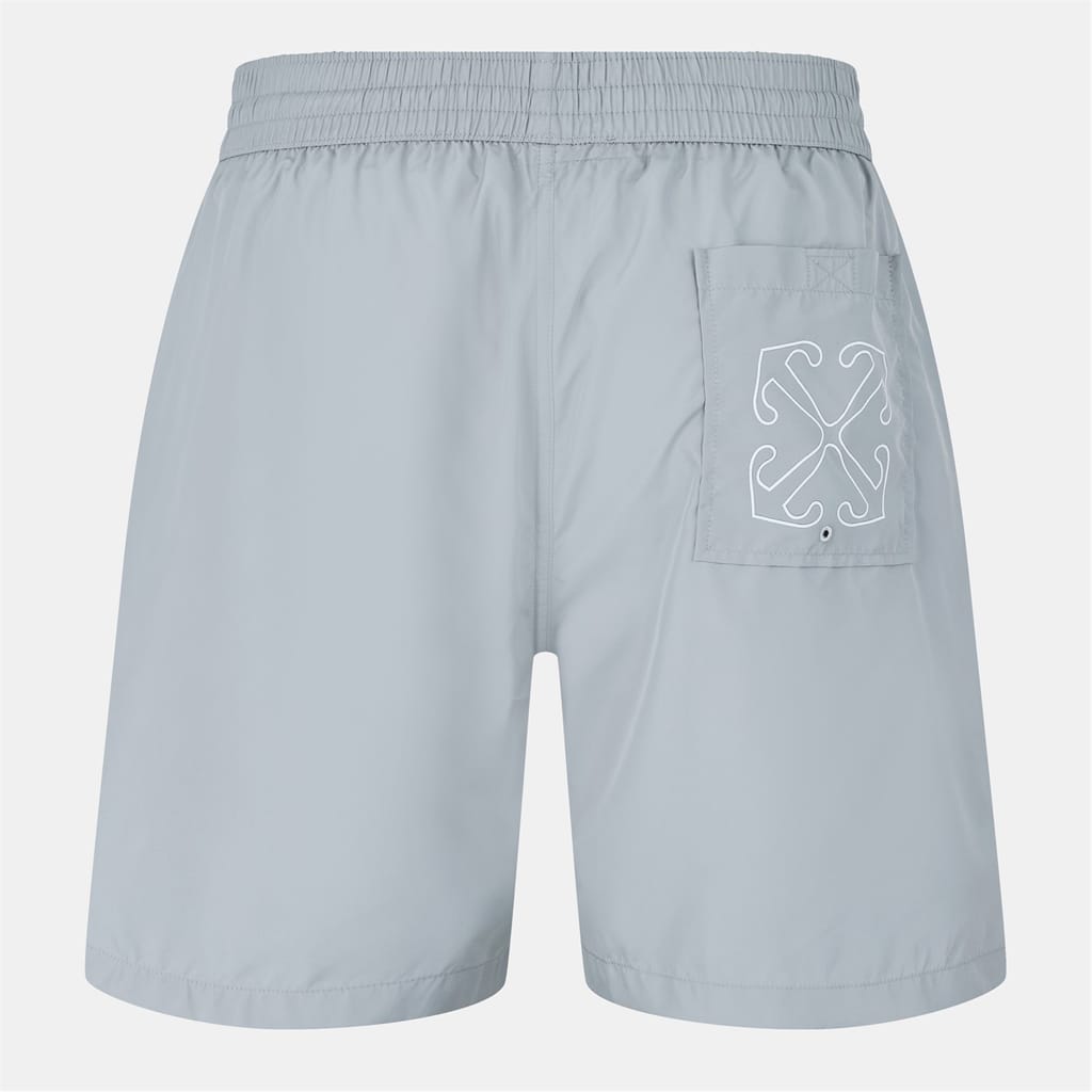 Discover Off White swimwear, featuring a swim bottom designed for both swimming and beach collections. This piece includes an elasticated waistband for a comfortable fit and is adorned with a distinctive logo embellishment, adding a touch of style to your swimwear collection. -