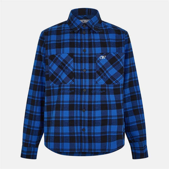 This Off White top features a classic plaid pattern with long shirt sleeves and a shirt collar. Designed in a regular fit, it includes a button closure for a refined look. The top is embellished with a subtle logo, adding a touch of brand identity. -