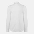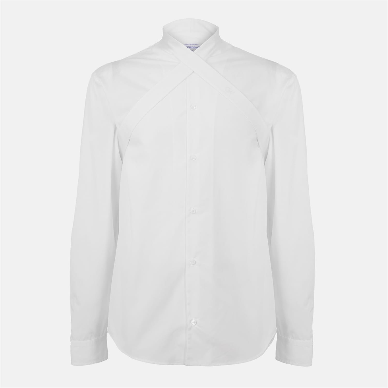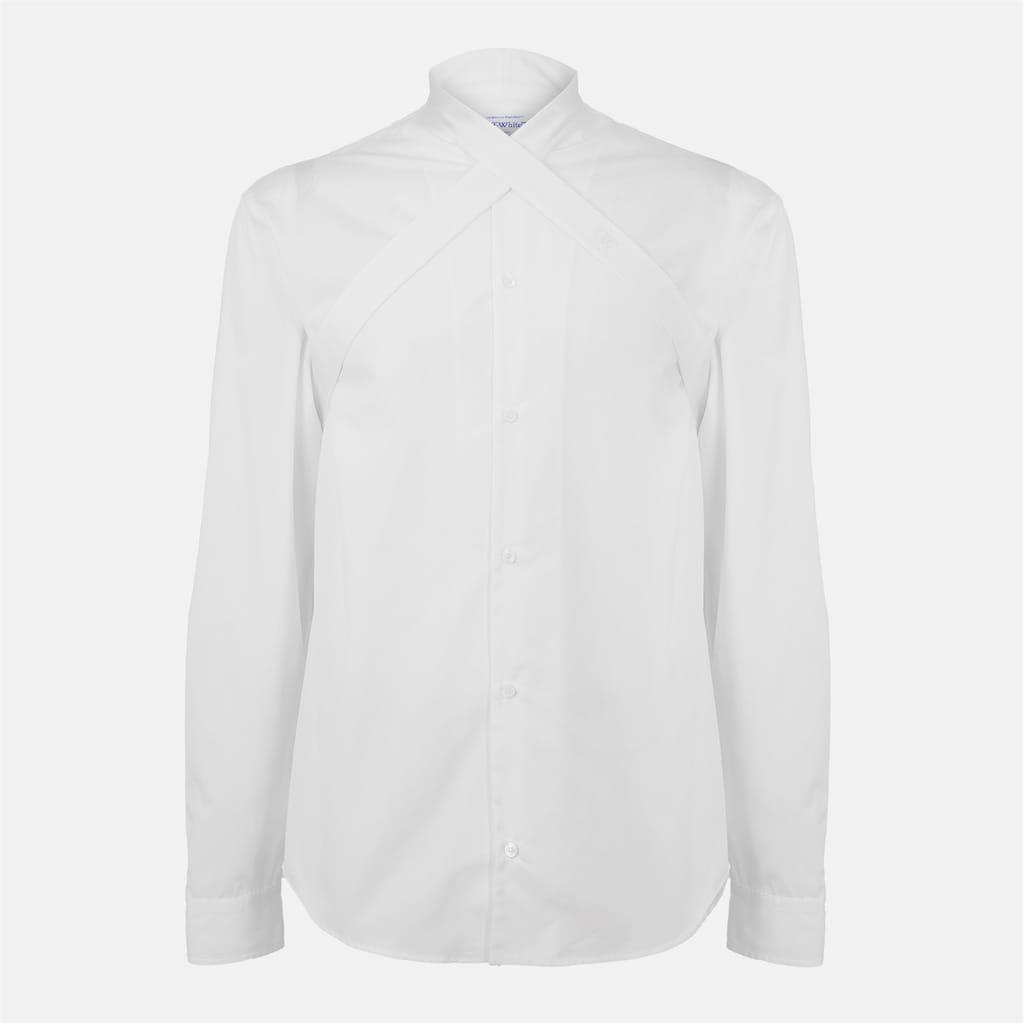 This Off White top features a solid pattern with long sleeves and a button closure. The design includes cuff sleeves, offering a refined touch to the overall look. -