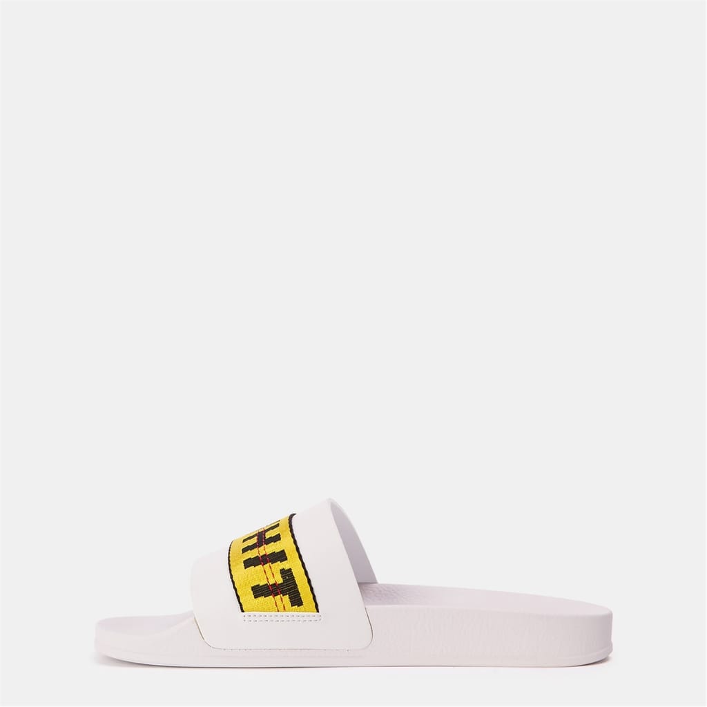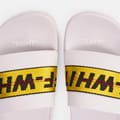 Discover the Off White slides, a stylish addition to your footwear collection. These open-toe sandals feature distinctive lettering, offering a unique touch to your ensemble. Perfect for those seeking a blend of comfort and contemporary design in their shoes. -