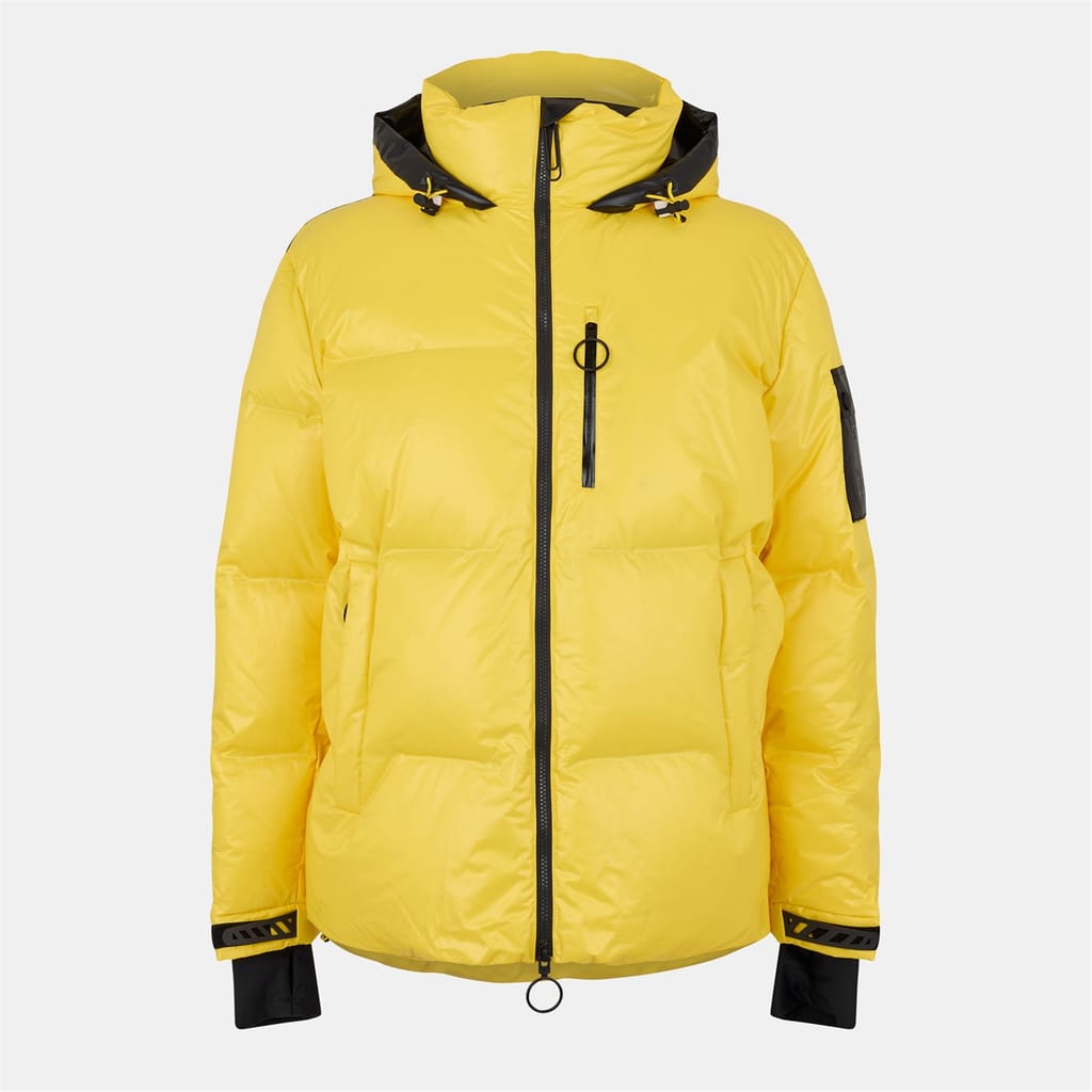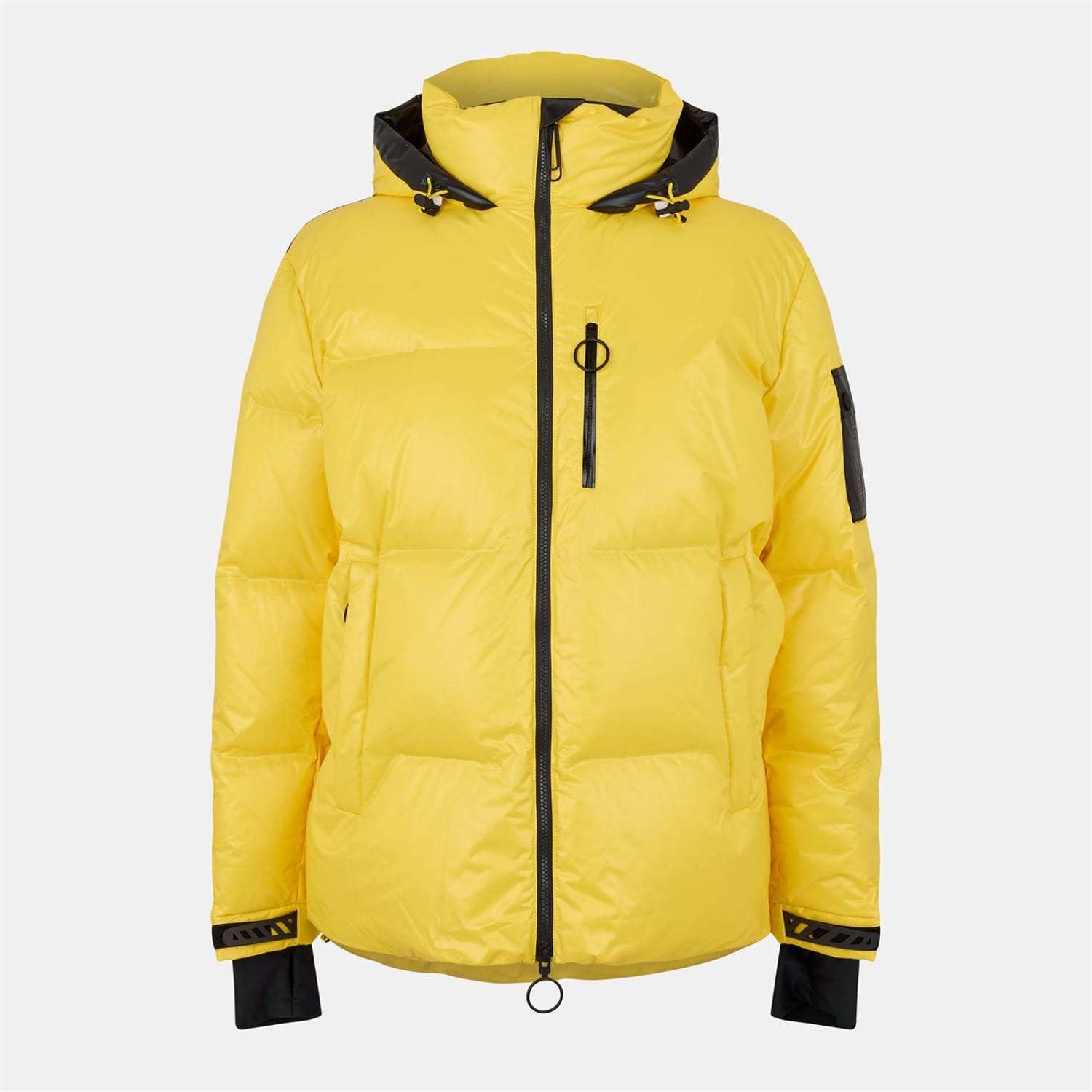 This Off-White puffer jacket is designed for those who appreciate style and functionality. Featuring a hooded neckline and a regular fit, it offers comfort and warmth. The jacket includes a zipper closure and zipped pockets for practicality. The ribbed cuffs and straight hem add to its sleek design, while the solid pattern and logo embellishment provide a distinctive touch. -