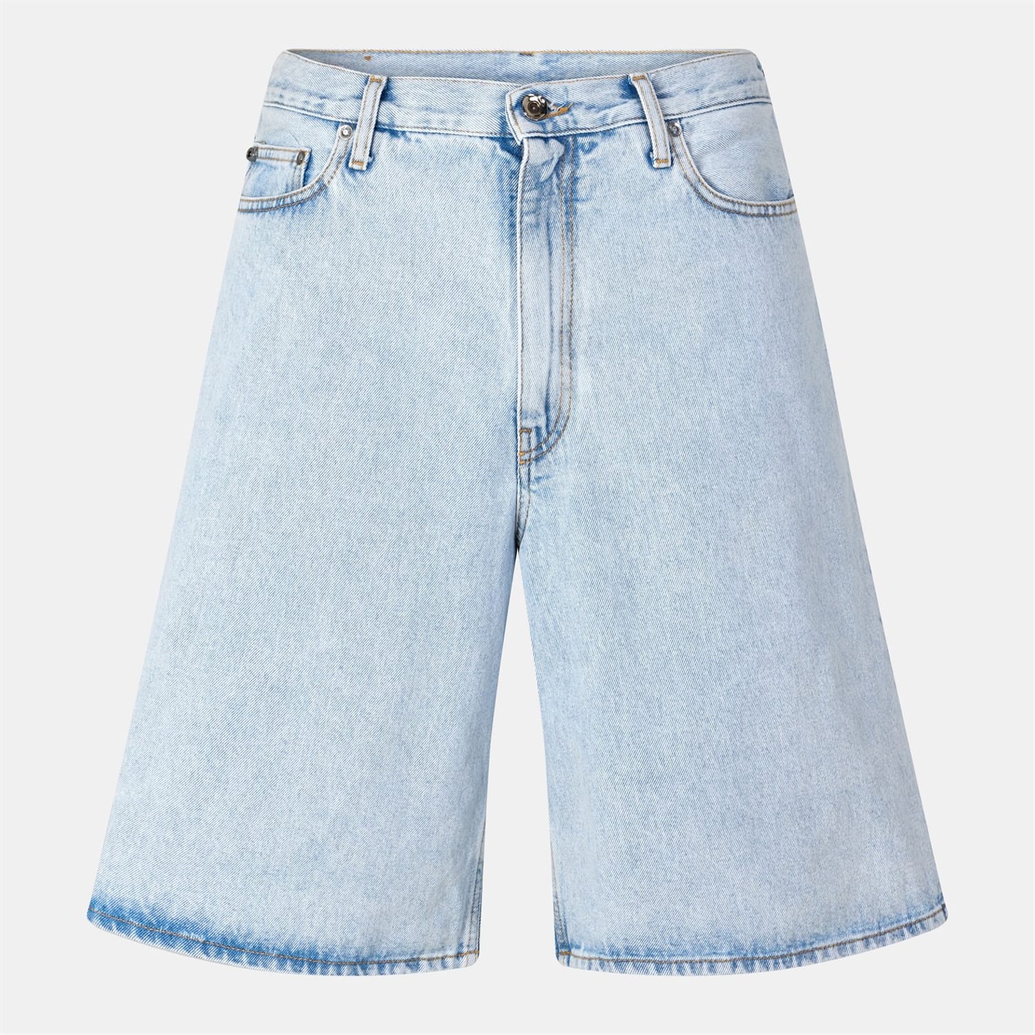 Discover Off-White's solid jean shorts, a versatile addition to your casual collection. These bermuda shorts feature a button and zip fly closure, offering a comfortable fit. Designed with practical pockets, they are perfect for both casual and athletic activities, including skating. The solid pattern adds a classic touch to these stylish shorts. -