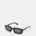Discover Off-White sunglasses, a perfect blend of style and functionality. These rectangle sunglasses feature a full rim design crafted from durable plastic, ensuring a comfortable fit. The single bridge adds a sleek touch, while the lenses offer 100% UV protection. Embellished with a distinctive logo and metal branding, these sunglasses make a bold statement. -