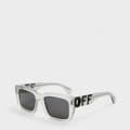Discover Off-White sunglasses, a stylish addition to your eyewear collection. These square sunglasses feature a durable plastic frame with a full rim design, ensuring a modern look. The single bridge adds to the sleek aesthetic, while the lenses provide 100% UV protection. Embellished with the iconic logo, these sunglasses combine fashion and functionality effortlessly. -
