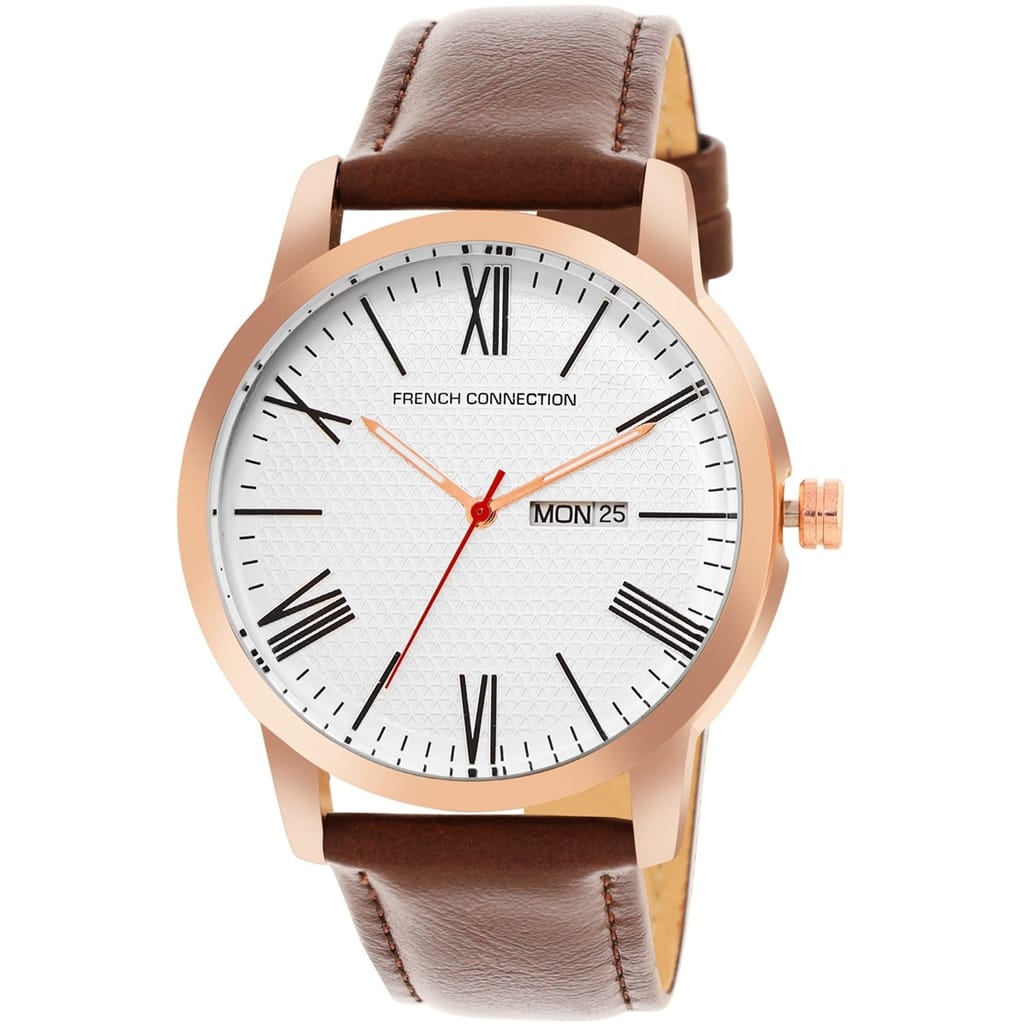 Since its creation in 1972, French Connection has enthused a passion for design and continues to deliver timeless quality. French Connection is a design-led British brand, creating distinctive products across women's wear, menswear, accessories and home for the modern lifestyle. Dress your wrist with one of our sleek watches. The perfect everyday accessory, this French Connection watch is both practical and stylish. This piece can be worn with your favourite outfit for your casual date night. Dress bare wrists with one of our modern watches. A must-have accessory, our watches are contemporary timepieces that will complete everyday outfits. From classic leather straps to sleek stainless steel bracelet styles, each of our watches has a premium look and feel, while interchangeable strap styles provide multiple options dependent on outfit and occasion. The brand distributes globally through retail stores, e-commerce, wholesale and licensing channels and is committed to offering a premium experience, ensuring the customer is at the heart of the business.