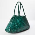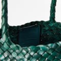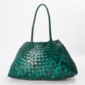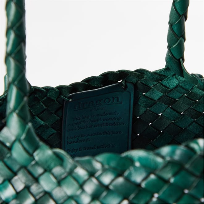 Dragon Diffusion’s Santa Croce Tote Bag showcases exquisite craftsmanship with its irregular leather weaving, tapering elegantly towards the brim. This practical yet refined design is perfect for transitioning from day to night in the city. Staying true to traditional basket weaving techniques, it offers both style and function. Ideal for a busy workday or a chic evening out.