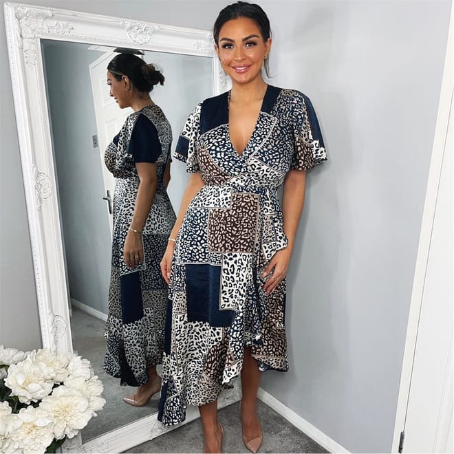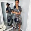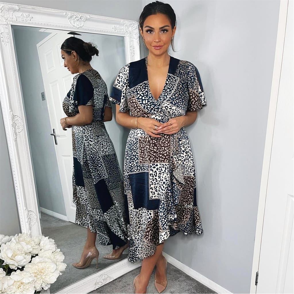 Our Navy Animal Print Patchwork Wrap Midi Dress is the perfect occasion dress! Featuring a wrap top and skirt with frill edging, butterfly sleeves, a dipped hem and zip up back. Simply pair with heels and a clutch to complete the outfit!
